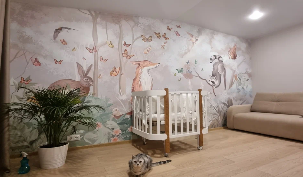 Долго не могла определиться с дизайном, т.к. полотно не цельное, а рисунок хотелось оставить целостный. Но с менеджером Антоном у нас всё получилось!Качество обоев супер! Качество рисунка просто огонь! Муж был скептически настроен, но даже ему очень понравилось!