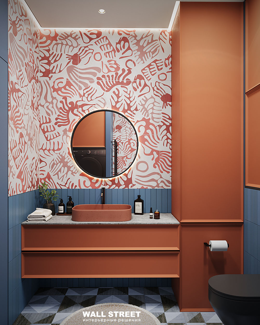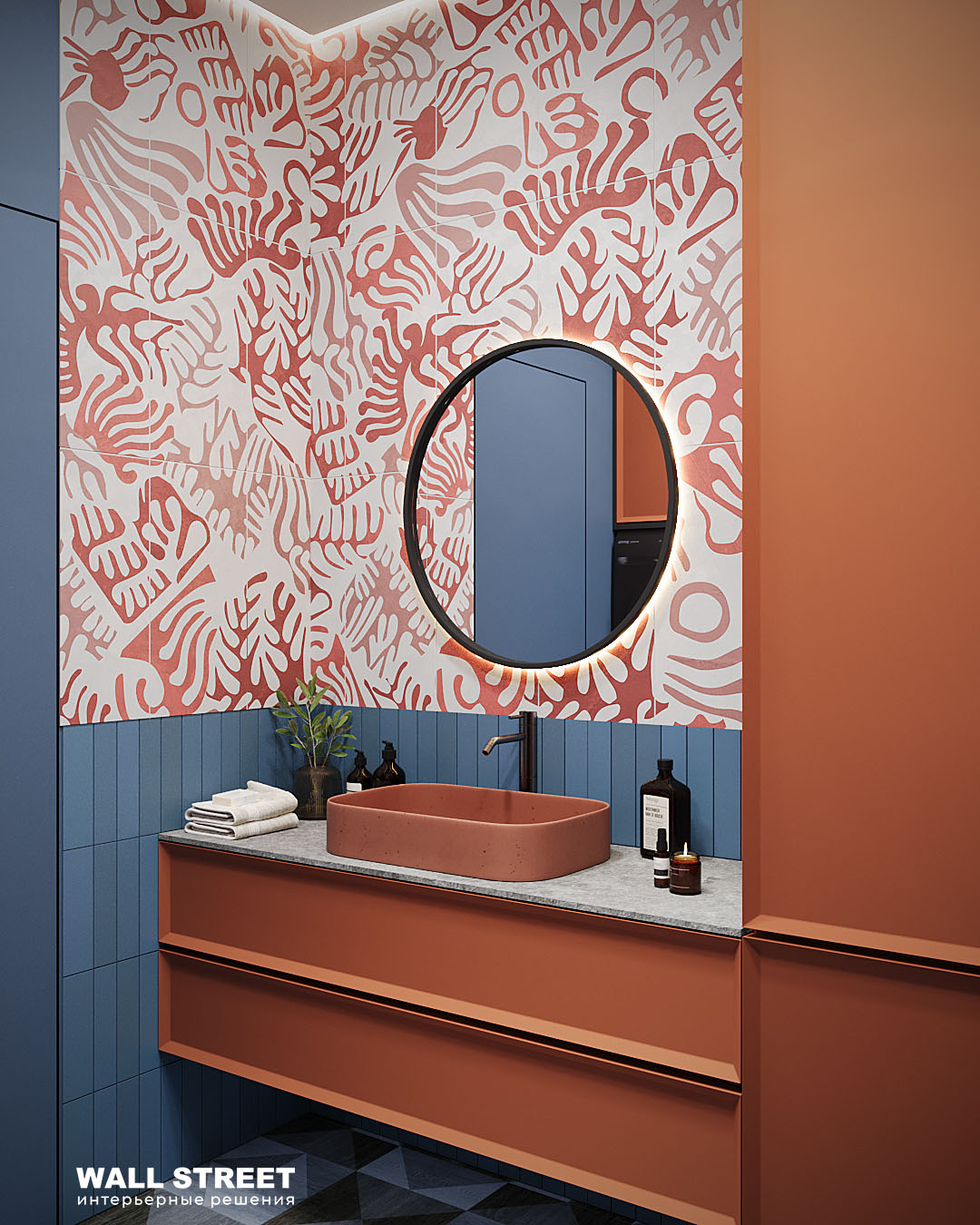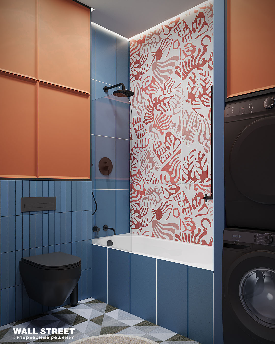 Настроение этой ванной комнате задала плитка из коллекции MATISSE. В ней использованы сюжеты, вдохновленные творчеством французского художника Анри Матисса. Факт о коллекции — это не нарисованные образы. Все эти формы, контуры и цвета — это реальные элементы из бумаги, сделанные вручную, а затем перенесённые в цифровой формат.