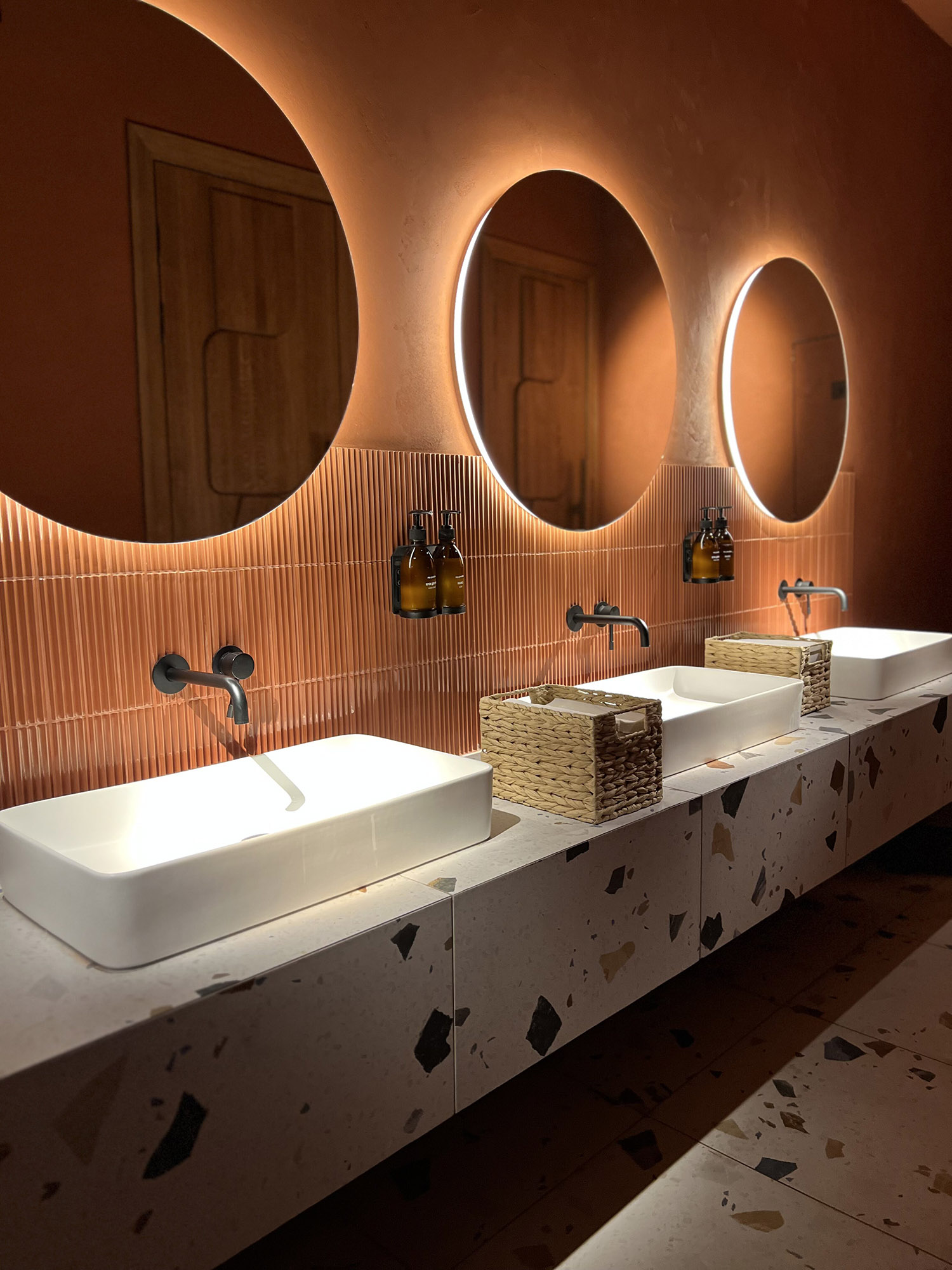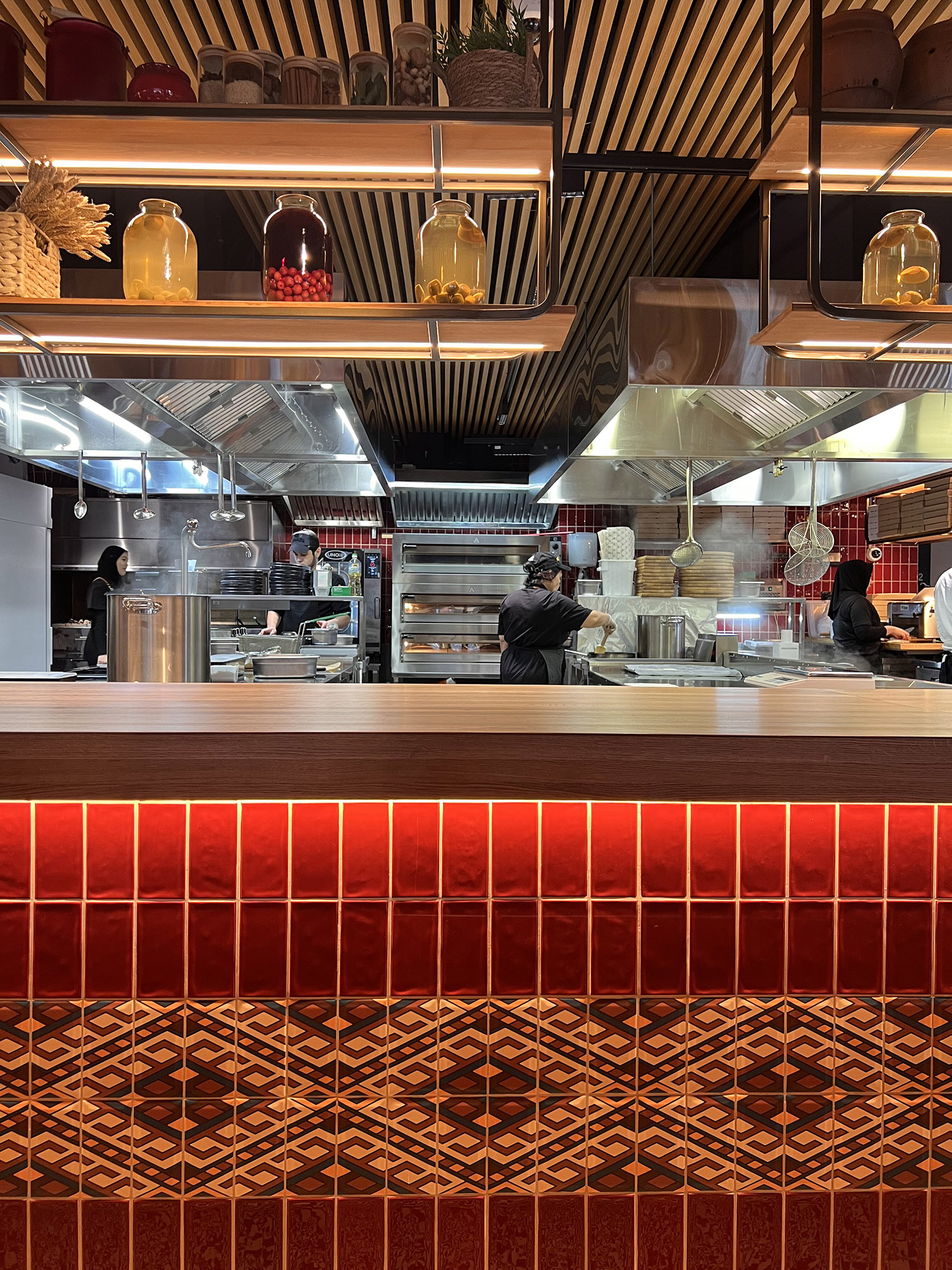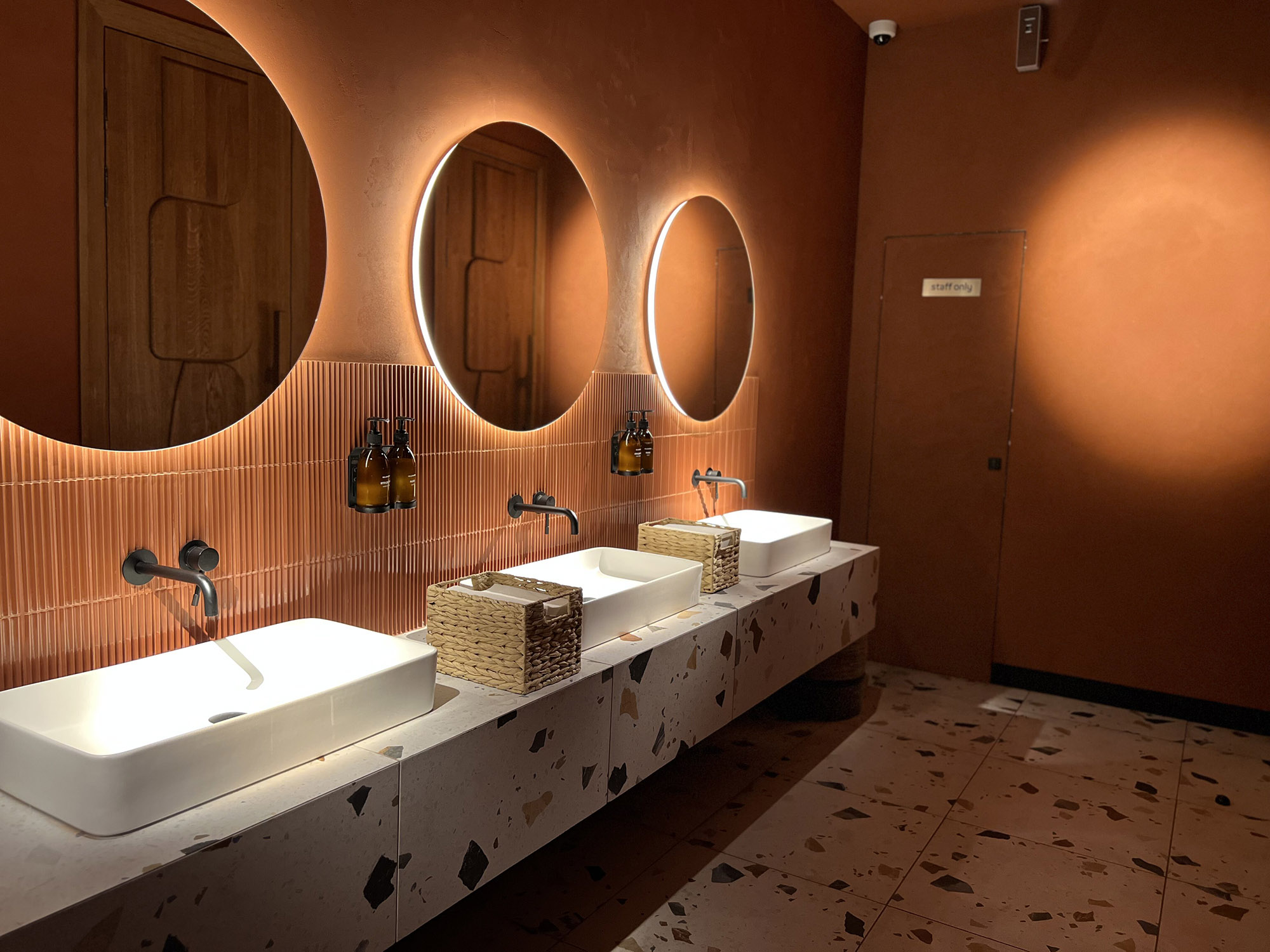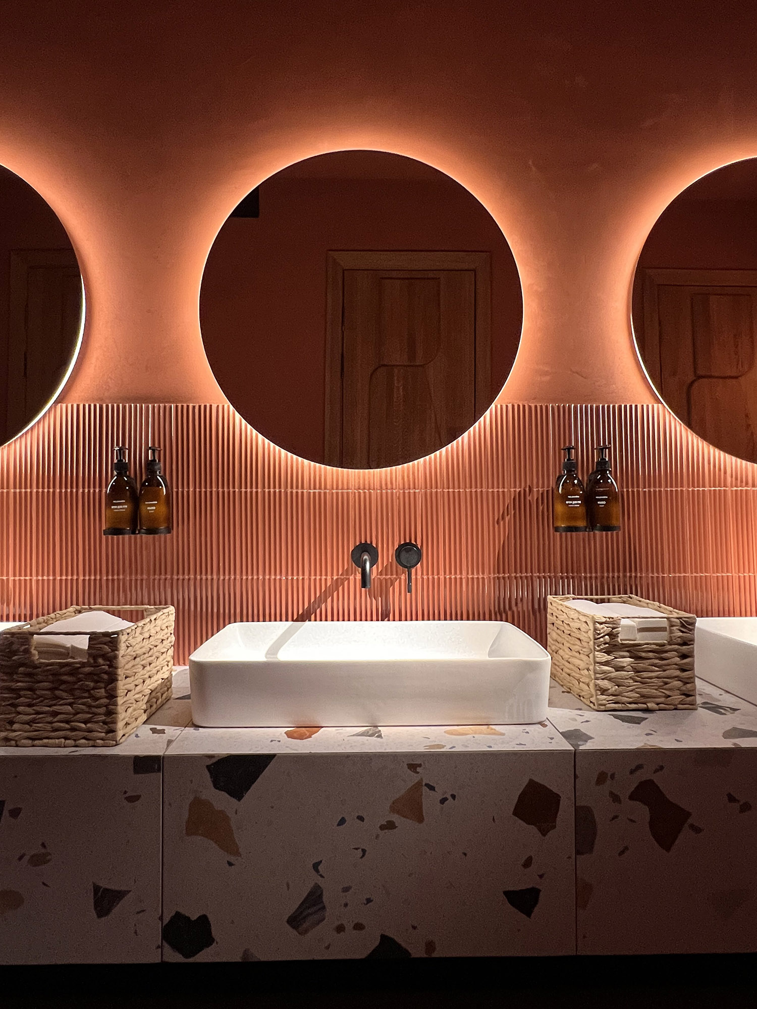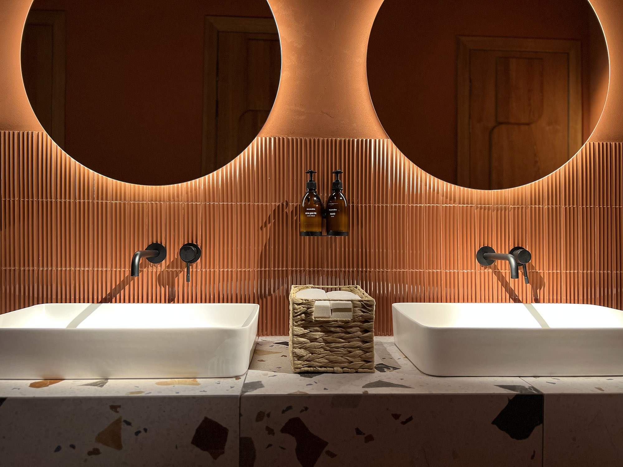 При выборе плитки для нового ресторана нашим дизайнерам пришлось столкнуться с непростой задачей: найти идеальный оттенок, который бы гармонично сочетался с текстилем и другими элементами интерьера. Особое внимание уделялось цвету кресел, которые имели мозаичный узор, напоминающий изображение на плитке. Дизайнеры вручную отрисовали вариант плитки, который идеально сочетается с цветом кресел и создает ощущение гармонии и завершенности в интерьере.