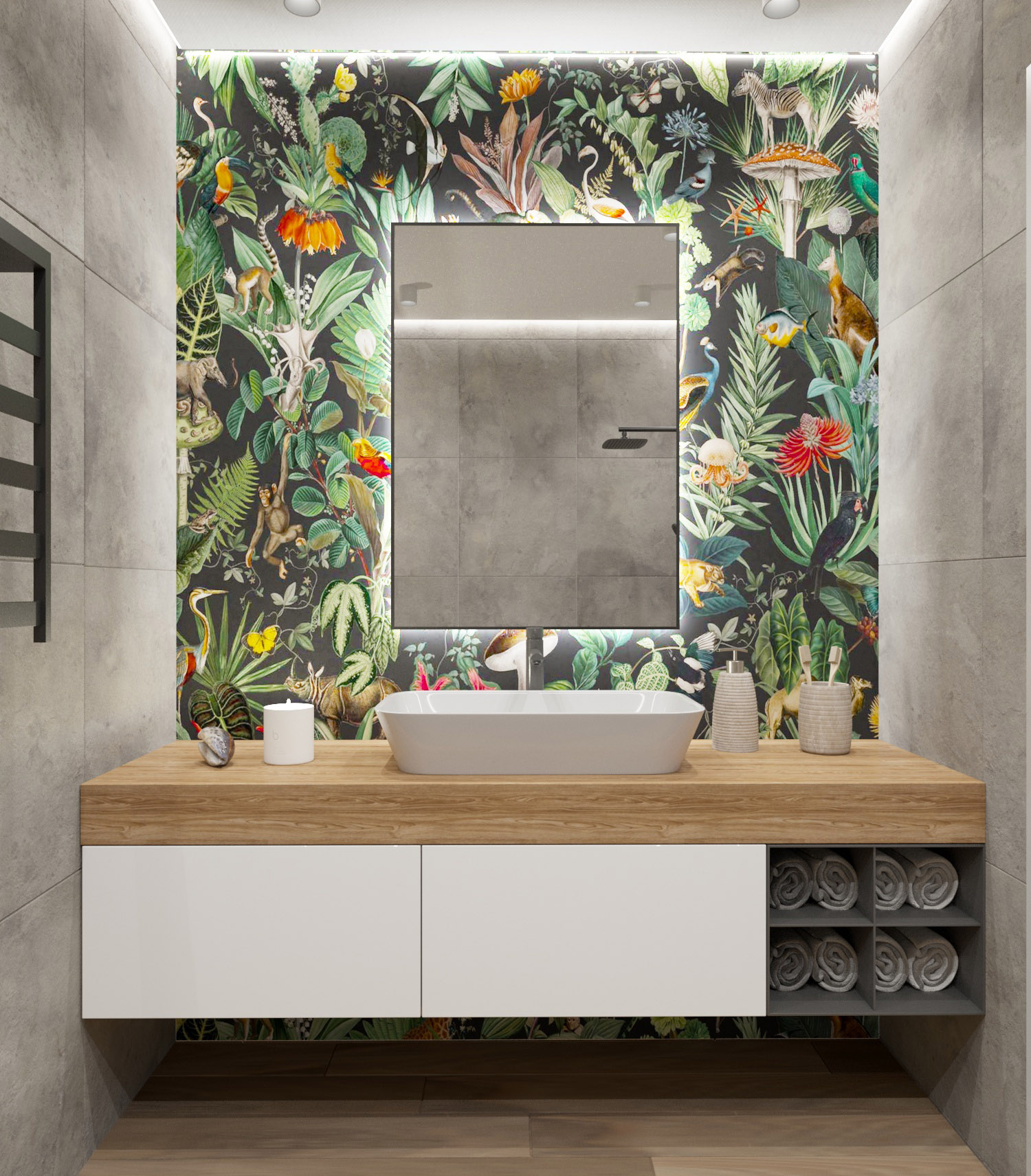 Яркий проект у ярких ребят. Дизайнеры постарались показать внутренний мир через оформление пространства. Обои из коллекции «Eden-21». В ней мы совместили привлекательные для всех природные мотивы с яркими интенсивными красками. Эти удивительные принты придадут вашему интерьеру особый шик, а проработанные до мельчайших деталей рисунки каждый раз будут привлекать внимание и открывать вашему взору что-то новое.