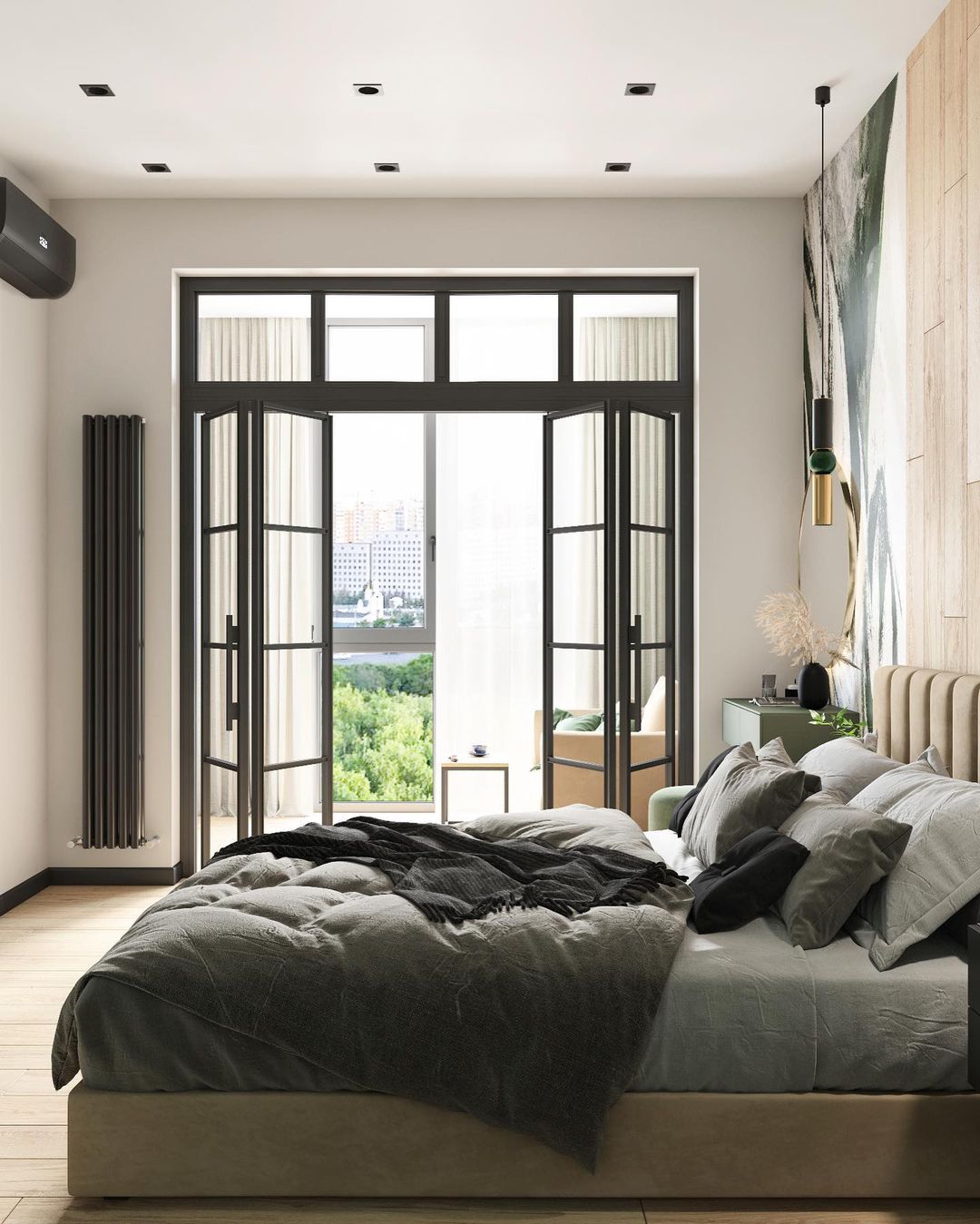 Природные материалы, лаконичность, цвета эко — идеальная спальня для молодой пары! Интерьер спальни выполнен в сканди стиле, но в более современной интерпретации с добавлением элементов из других стилей.