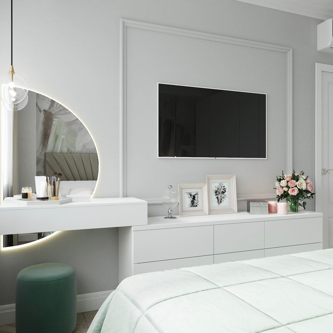 - туалетный столик с выдвижным ящиком дополнен зеркалом с диодной подсветкой,