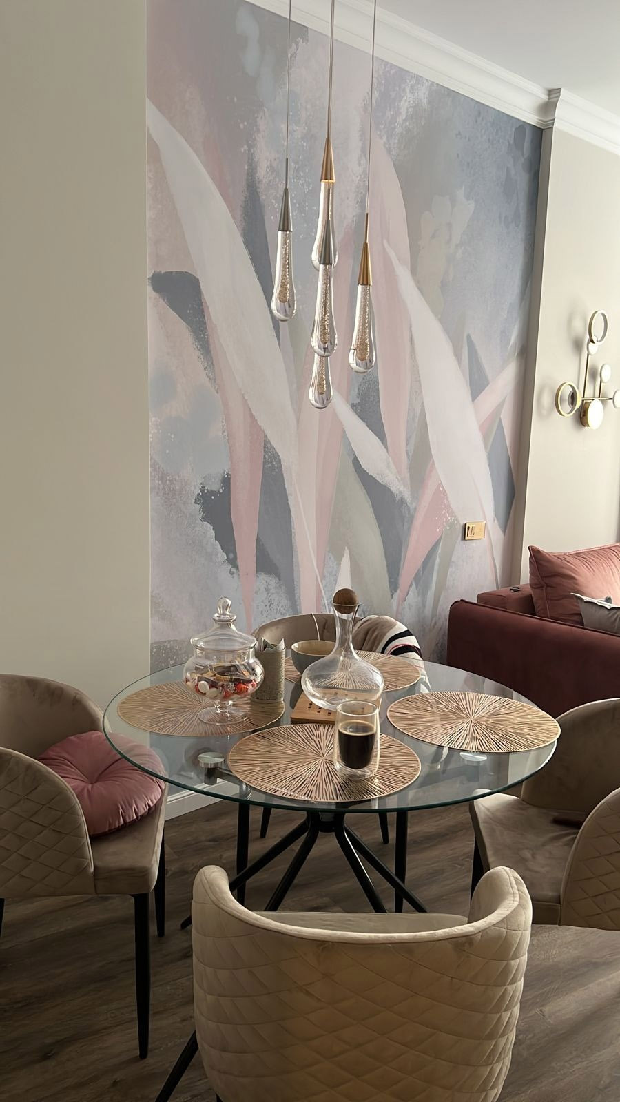 Выбор необходимого оттенка произошел не сразу. Сначала хотелось сделать светлее и сохранить синие тона. Затем хотелось их убрать, ведь синий уже добавила в квартиру коллекция «Astral». Но и он показался чуточку агрессивным, поэтому без нежных оттенков просто не обошлось.