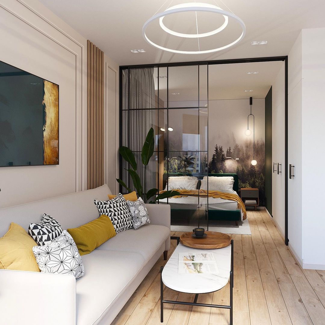 «Дизайн квартиры в эко-стиле создавался для молодой энергичной девушки. Главными пожеланиями у заказчицы было сохранение ощущения «воздуха», незахламленности пространства, а также использование натуральных оттенков в интерьере: глубокого зелёного и дерева», — рассказывает дизайнер этого проекта.