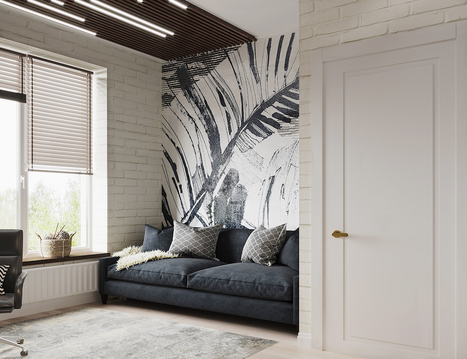 Светлый интерьер, где место не только для работы, но и для отдыха. Обои из коллекции LOWE.