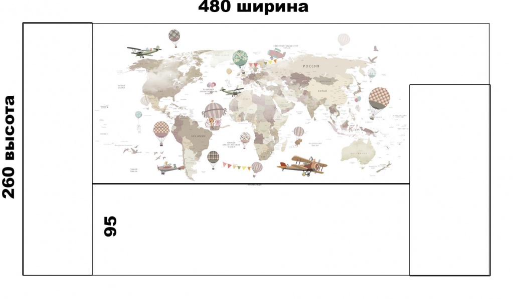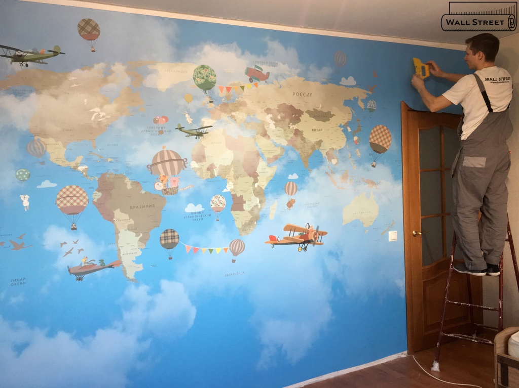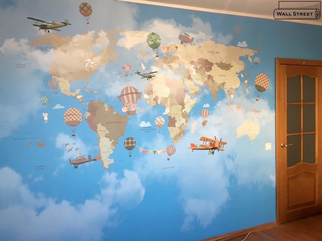 Заказчики выбрали изображение из Коллекции «Bon Voyage». Мы сделали макет с учетом размеров стены, дверей и размещаемой мебели.