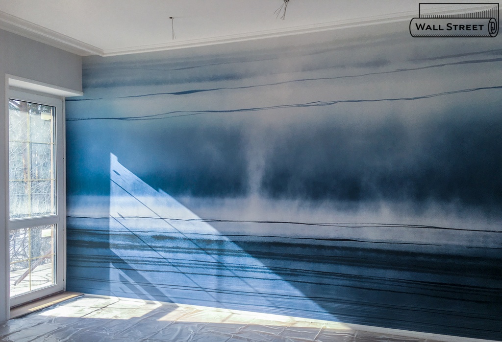 У стены будет стоять только небольшой диван, так что практически вся стена будет открываться взору.