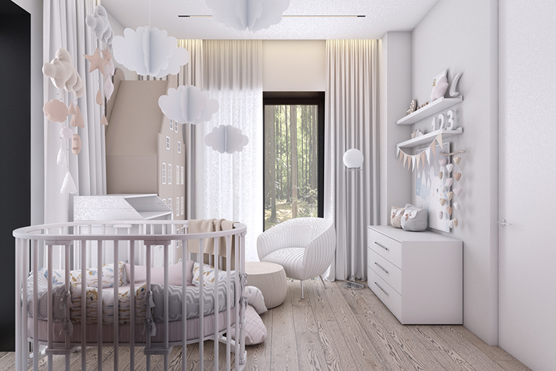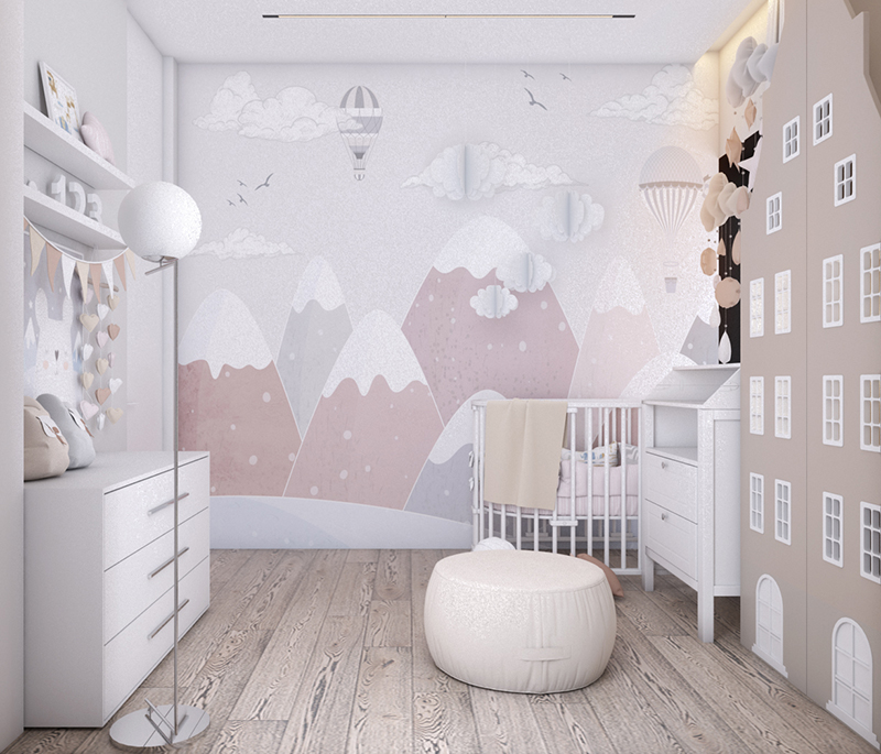 Проект детской в частном доме, г. Москва. Площадь комнаты 7 м². Заказчики — семья из двух человек: родители и дочь-подросток. В семье планируется прибавление, готовят детскую в современном стиле, которая подойдет как мальчику, так и девочке. Обои выбрали из коллекции «Big Little».