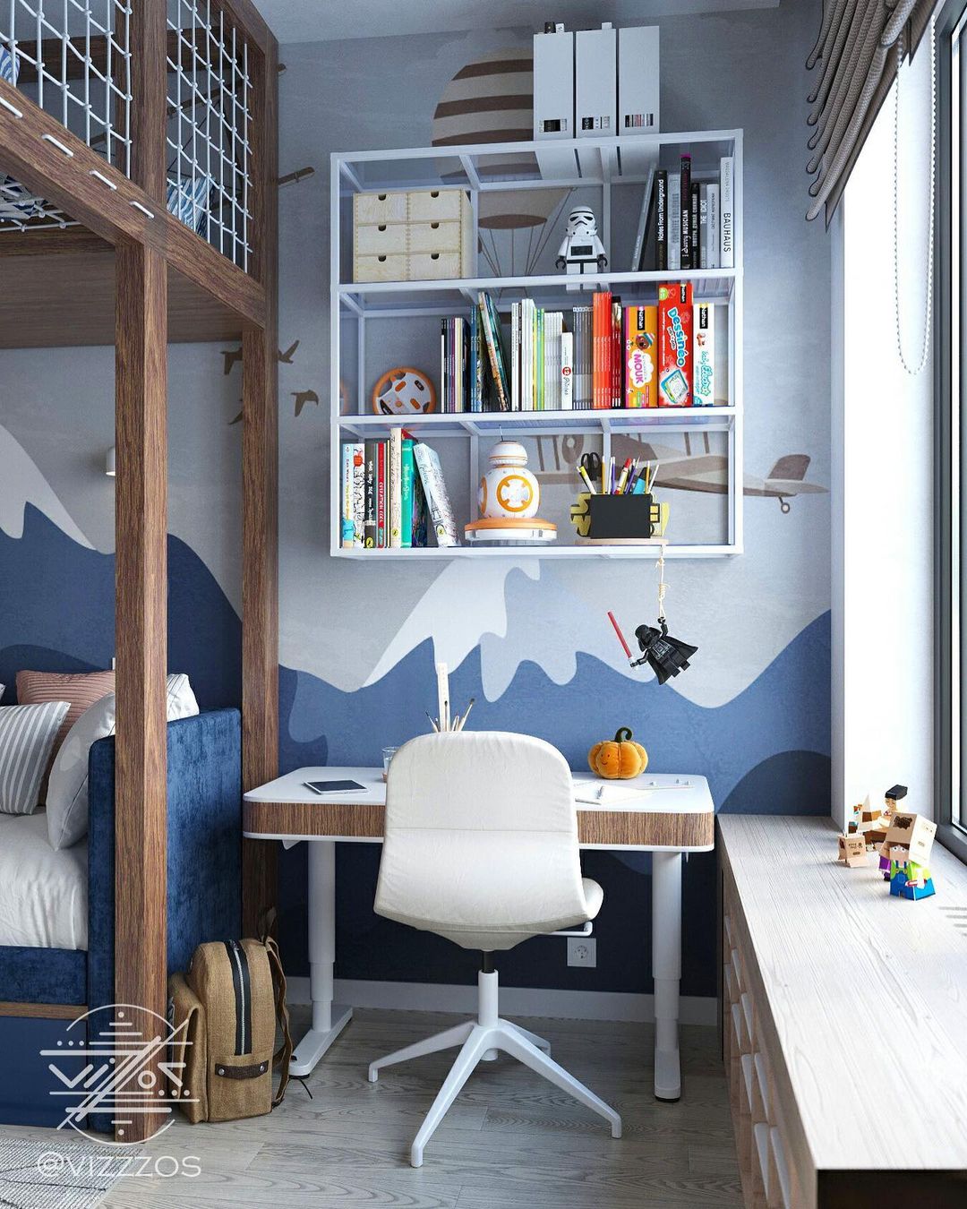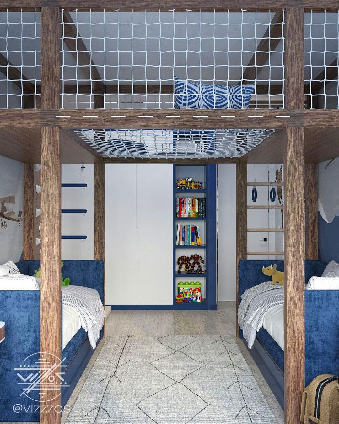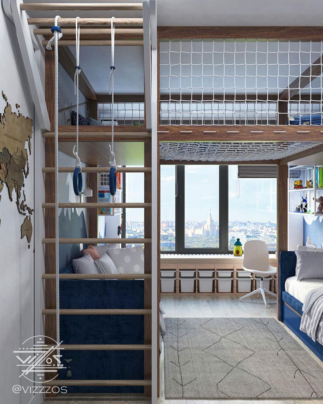 Проект в ЖК «Хэдлайнер», г. Москва. Выполнен для мебельной фабрики @mamka.moscow. Детская комната 18 м² для двух мальчиков 3 и 5 лет. Задача стояла разместить в одной комнате два полноценных спальных места,