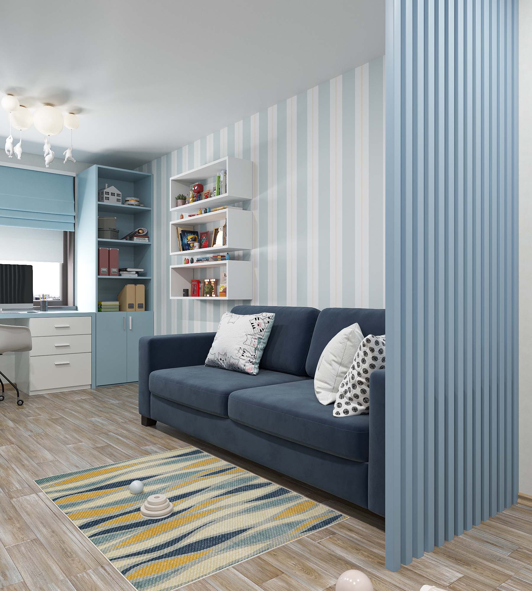 Детская комната с большой игровой зоной