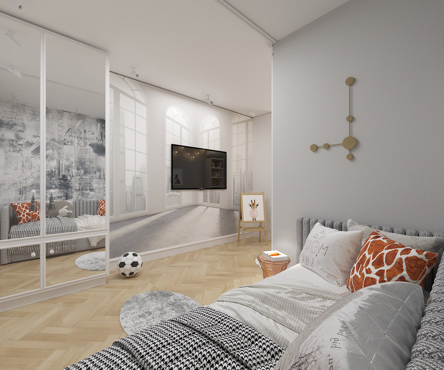 «Долго искала фреску в мальчишеский «альков». Всё было не то. И вдруг у вас на сайте нашла то, что нужно, — пишет нам дизайнер этого проекта Ирина. — Предложила заказчикам несколько фресок от разных производителей, а сама «держала пальцы крестиком», чтобы они выбрали именно вашу! Так и случилось!»
