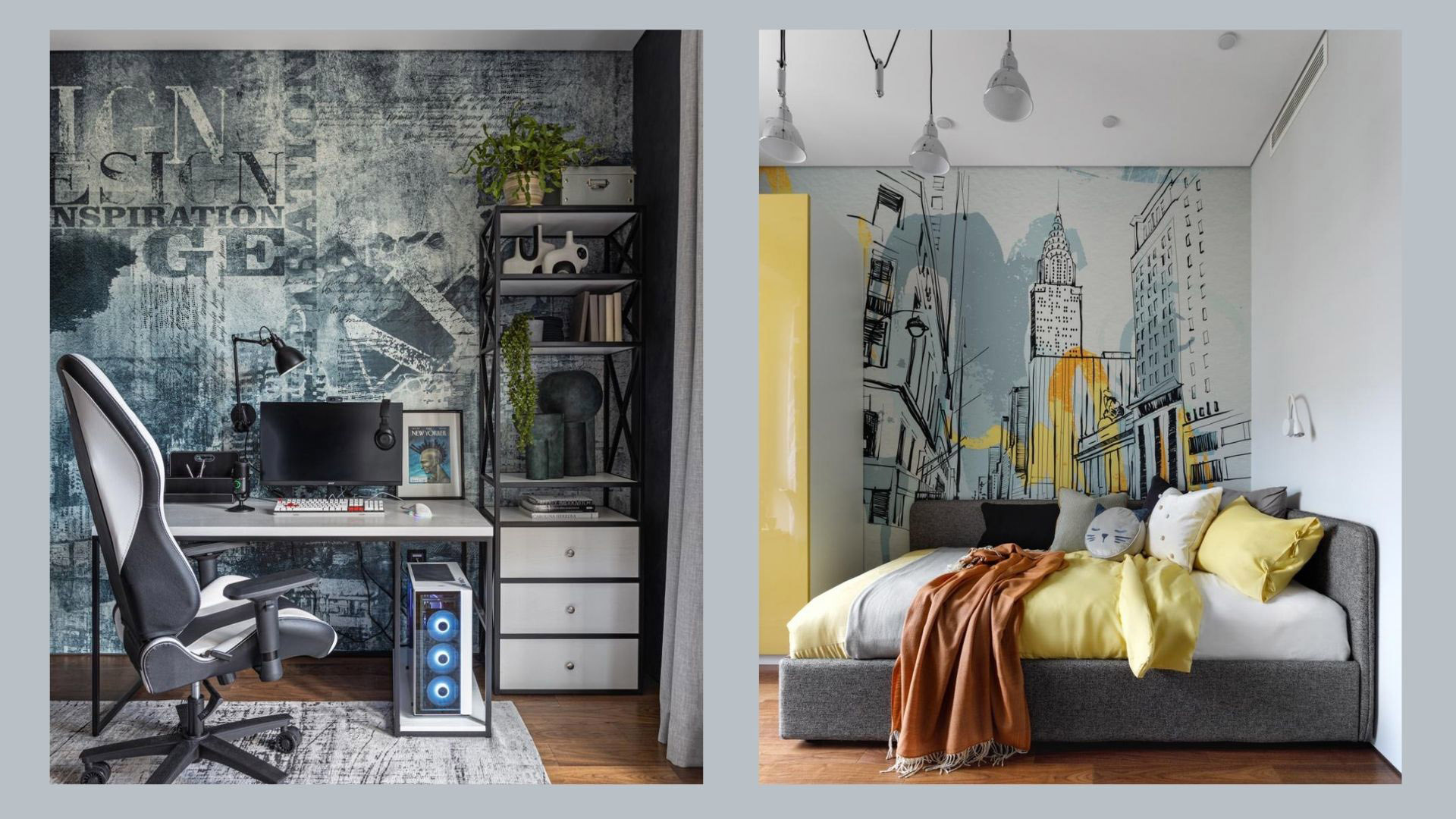 Нашей целью стали обои в детских, для которых дизайнер Оксана @korobenkova_design выбрала принты из коллекций Grunge и Urban.