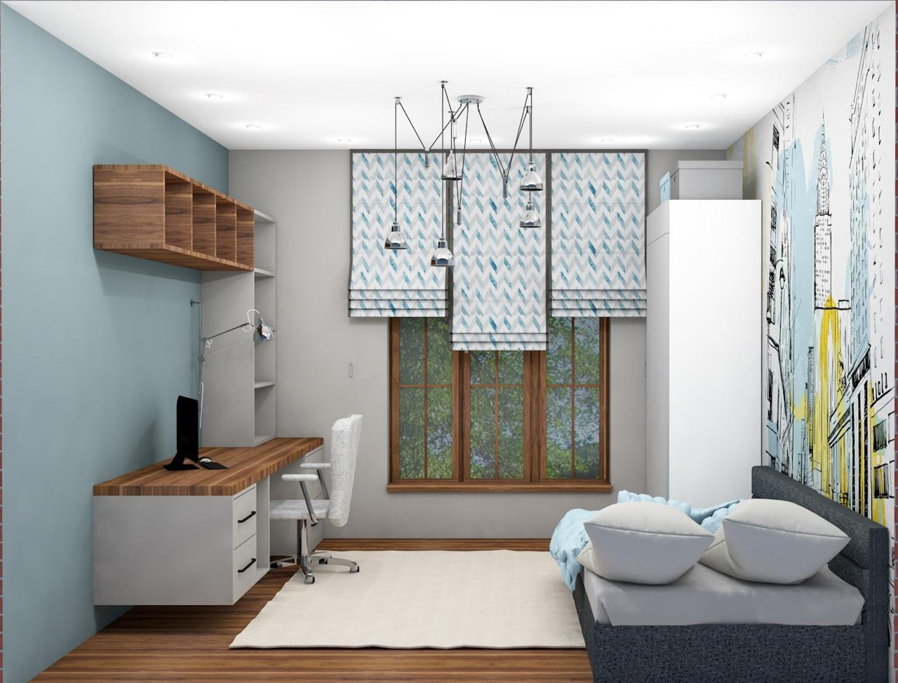 И, конечно, важна цветовая гамма, отвечающая характеру и пожеланиям хозяина комнаты. С этой задачей справился сюжет из коллекции Urban — в меру яркий и харизматичный.