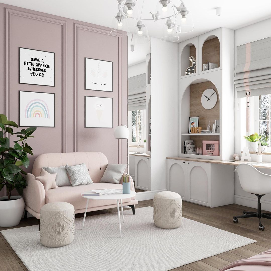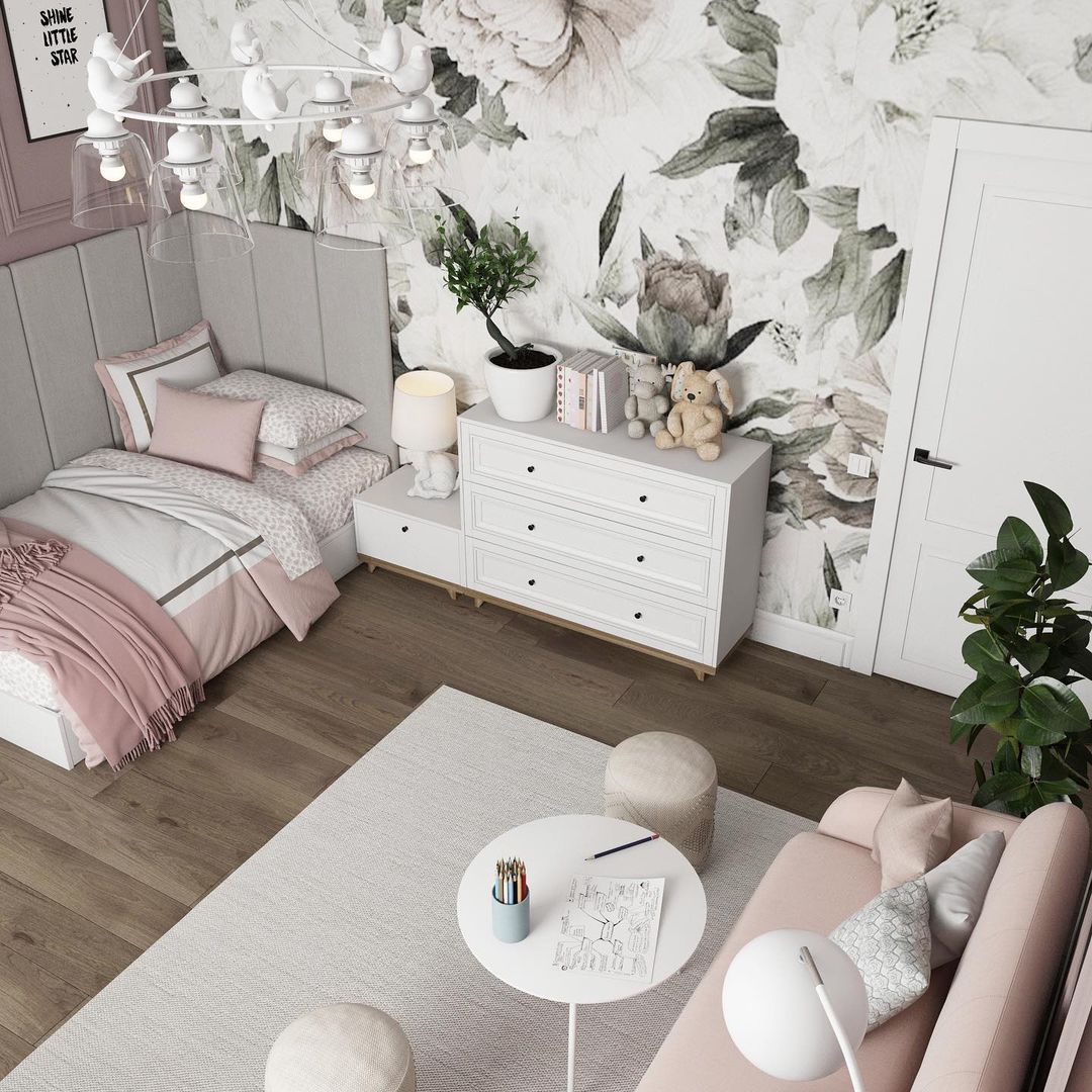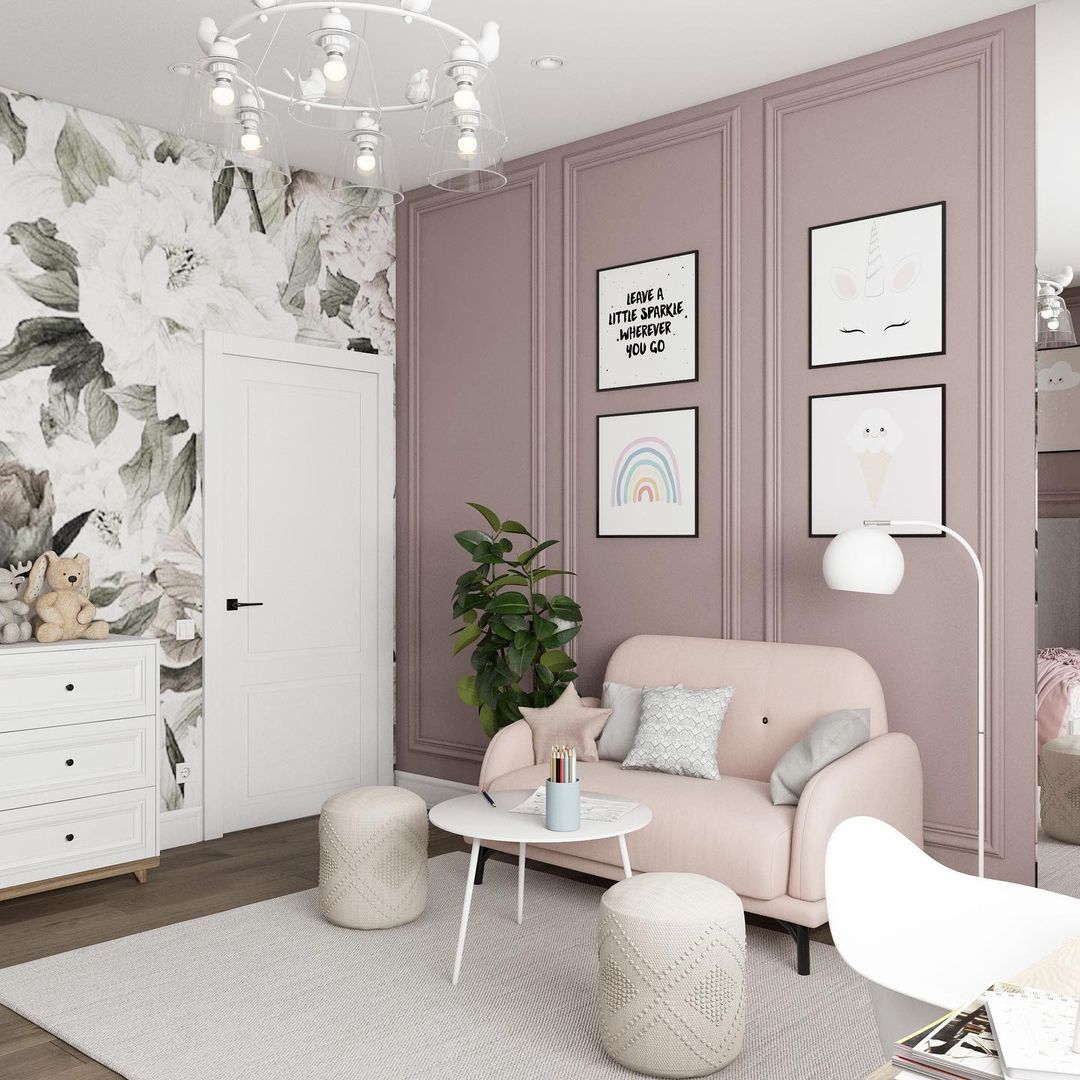 Это проект детской комнаты площадью 20,7 м² в частном доме в городе Казани. В ней выделили несколько основных зон: