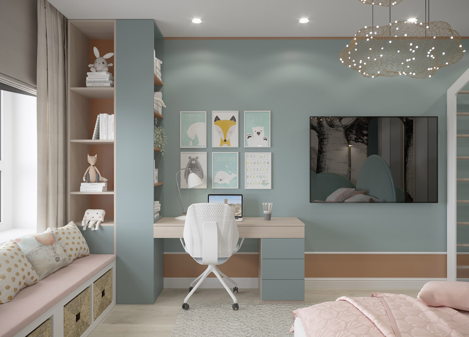 Детская комната для девочки 4 лет, г. Барнаул. Комната площадью 18 м². Обои из коллекции «Zoo».