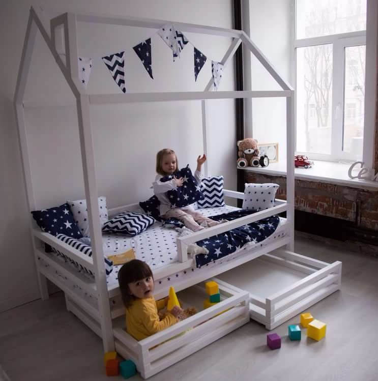 Появятся шкаф и кровать-домик. Все отмечено на плане. Фото кровати и