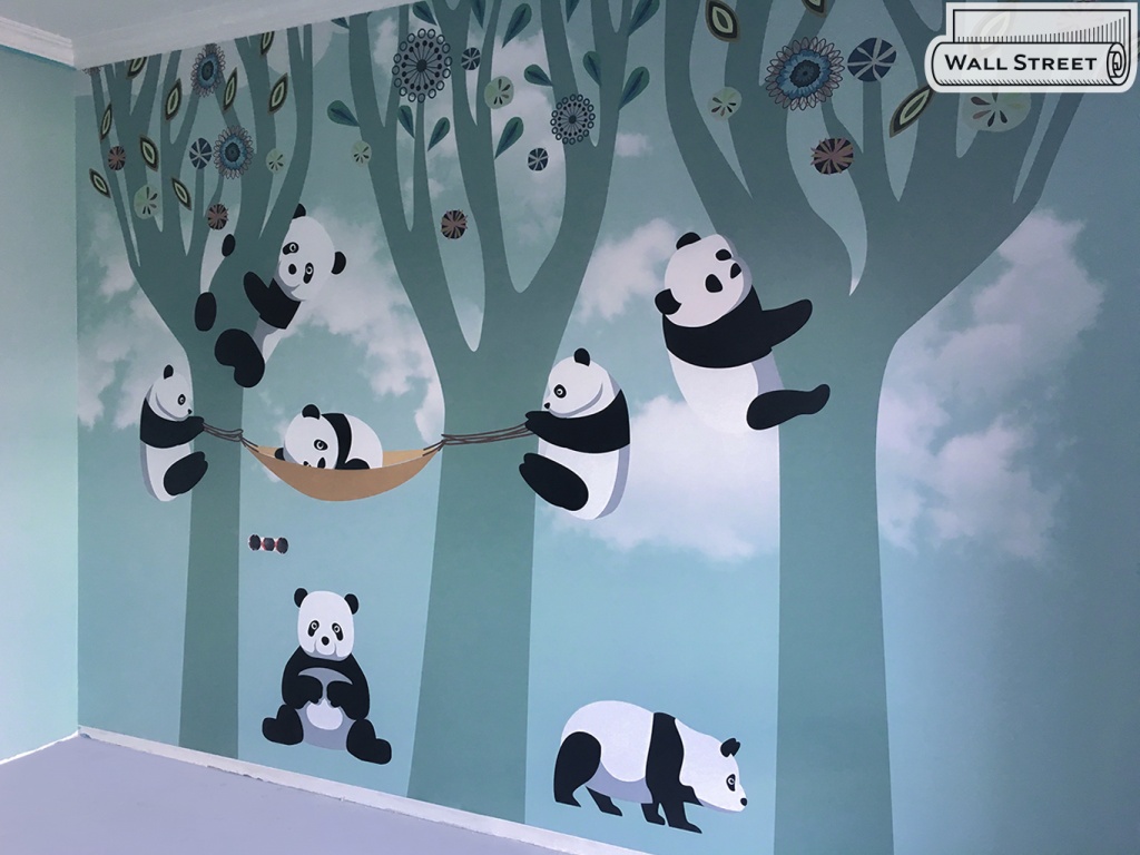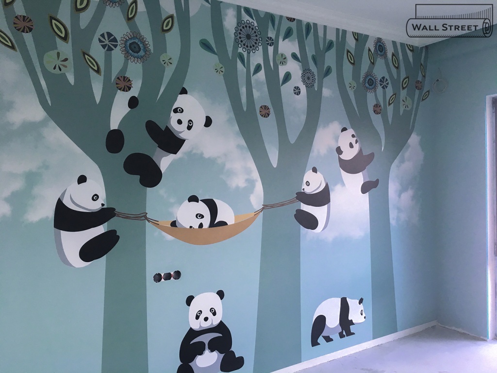прорезает розетки. Стена с фреской, изготовленной Студией Wall Street,