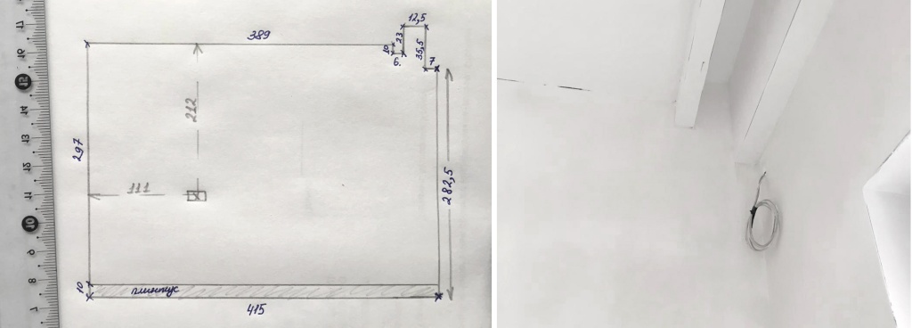 стены под фреску было 2 нюанса: розетки и ниша для шторы. Наш замерщик