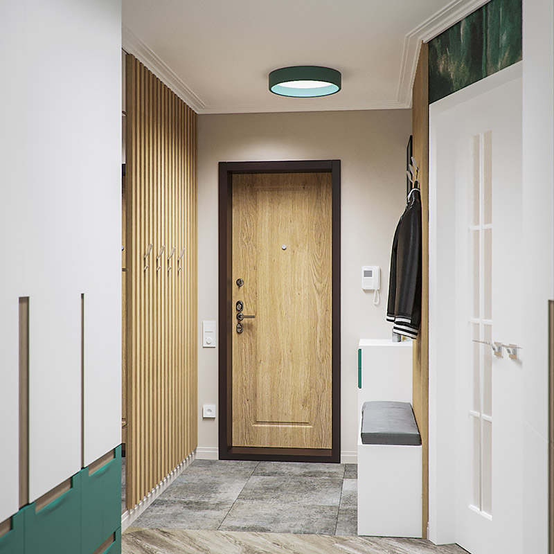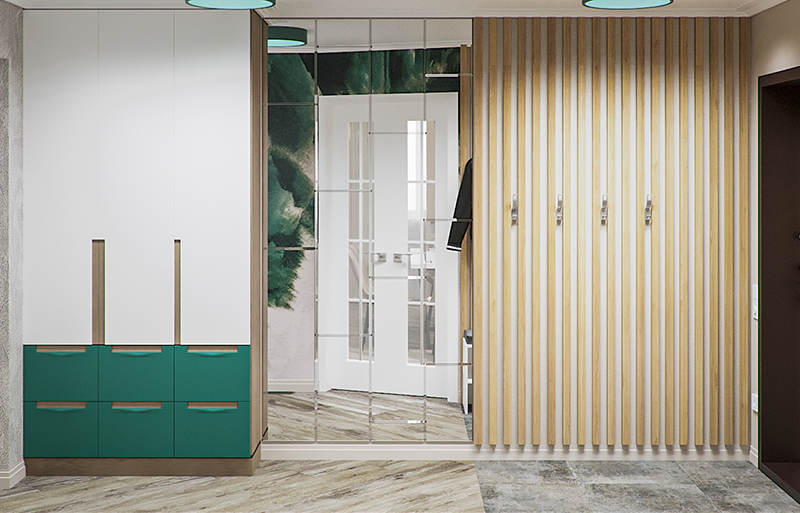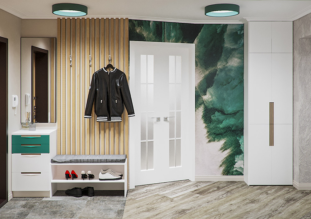 Лаконичный интерьер прихожей с яркими акцентами