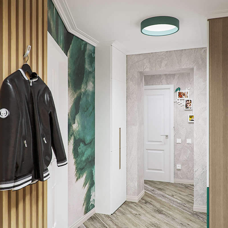 Квартира площадью 95 м² в Подмосковье для семьи с тремя детьми. Заказчик хотел лаконичный интерьер с добавлением ярких цветов. Для этого были выбраны обои из коллекции «Euphoria-22». Эта удивительная коллекция позволит взглянуть на интерьер вашего дома под другим углом и в других красках!