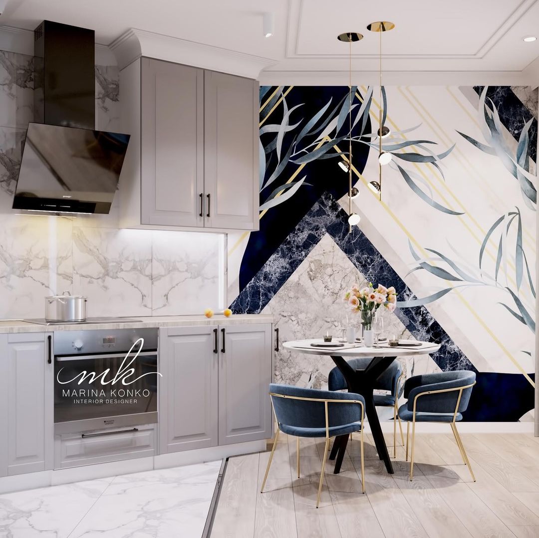 Грамотное зонирование кухни с обоями «Exquisito»