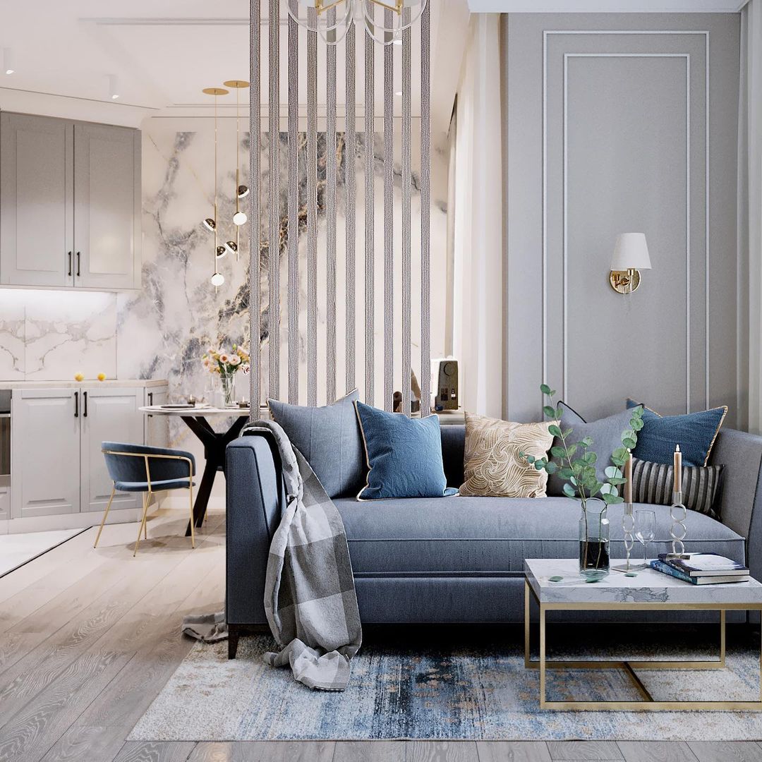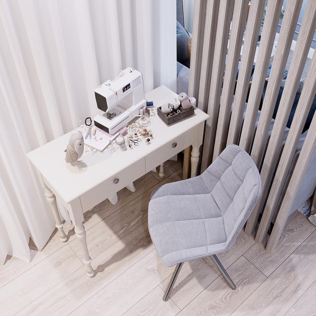 В этом проекте пожеланием заказчицы было грамотное зонирование, уют и функциональность. Площадь кухни 19 м². Хозяйка планирует всё своё время проводить именно здесь, на кухне. В проекте использовались обои из коллекции «Exquisito».