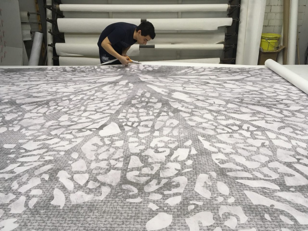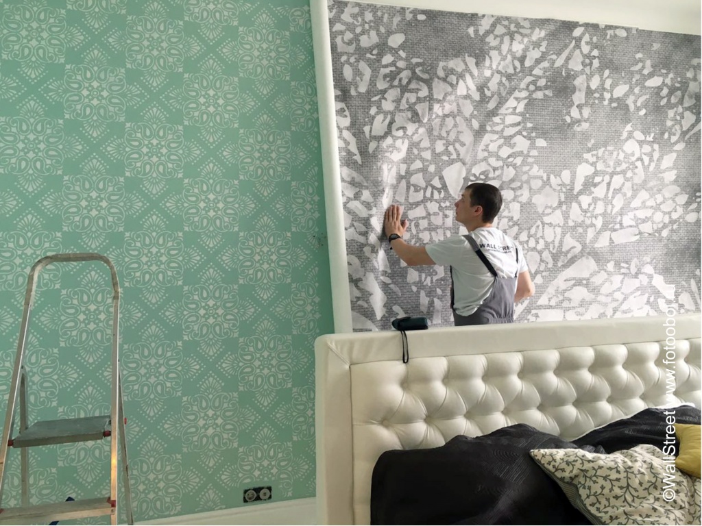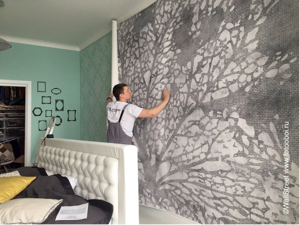 Монтаж бесшовных обоев и фресок — дело кропотливое, но выполнимое. Наш монтажник Саша полотно размером 471х241 см клеит один! И это у него прекрасно получается!