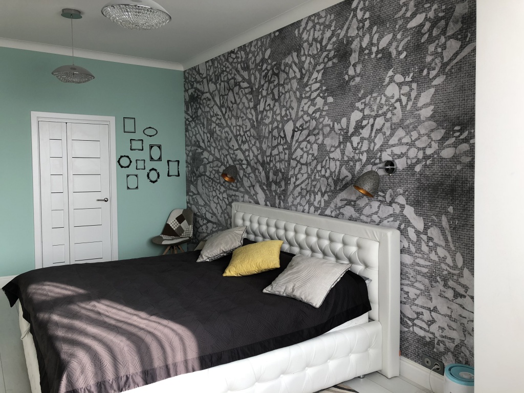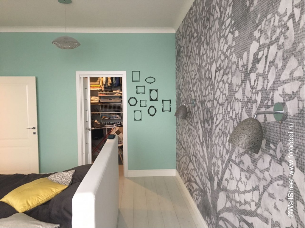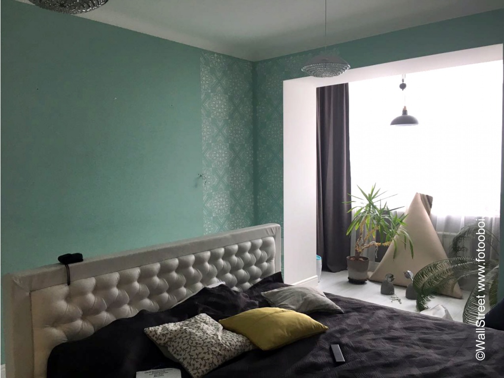 «Selva» мы выпустили в феврале 2018. И на данный момент это одна из успешнейших наших Коллекций. Наталья в обои влюбилась с первого взгляда. Она прислала нам точные размеры стены в спальне, которая планировалась под обои. Мы нарисовали макет в размер и показали увеличенные фрагменты. И так как выбор стоял между шовным материалом «Рига» и бесшовным «Sinteco», мы сделали предварительную разбивку полотна на полосы для наглядности. Фрагменты 1:1 мы показываем всегда, чтобы заказчик мог оценить качество предлагаемого изображения. Наши разработки идеальны.