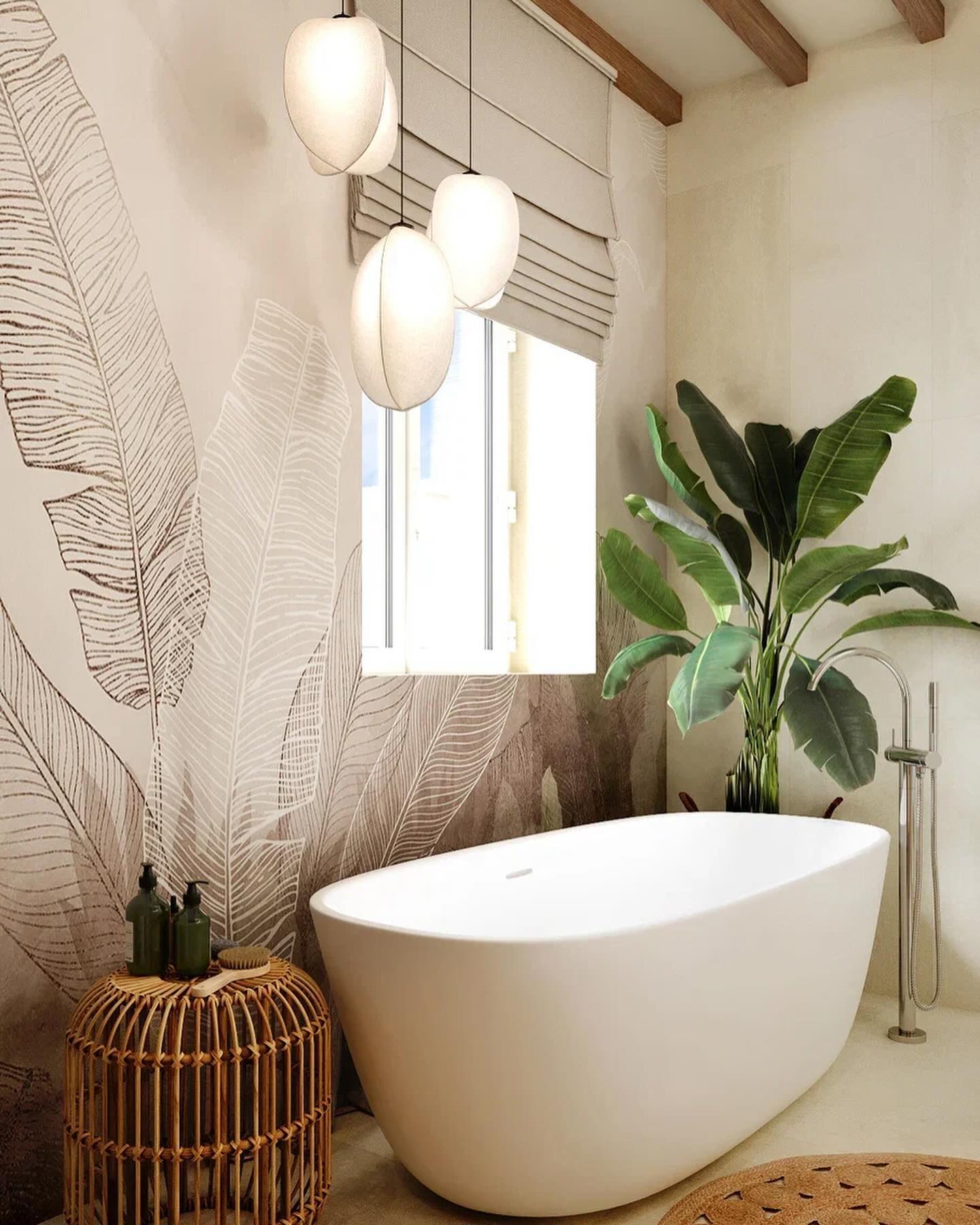Ванная комната с Балийскими мотивами — тот уголок солнечного тепла и тропического наслаждения, который так нужен каждому, кто живет в холодной Сибири. Отдельно стоящая ванна у окна, банановая пальма, тропический душ и тёплый оттенок обоев на стенах создают ту незабываемую атмосферу отдыха!