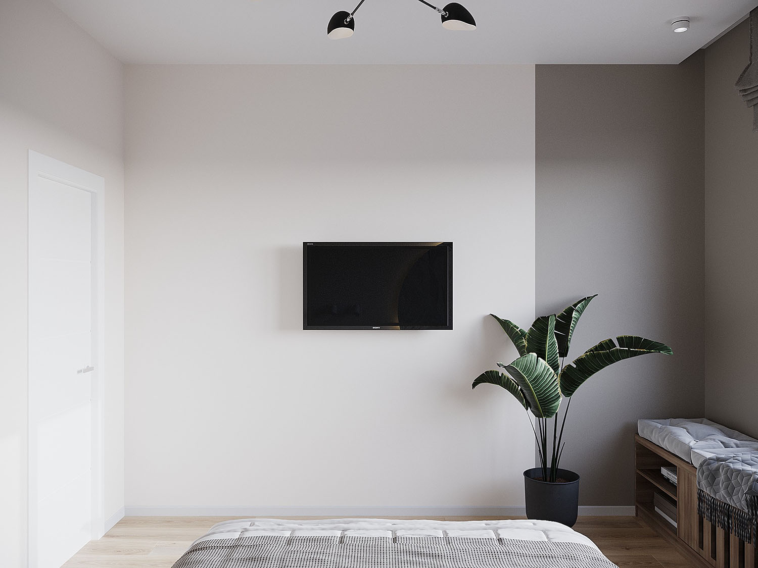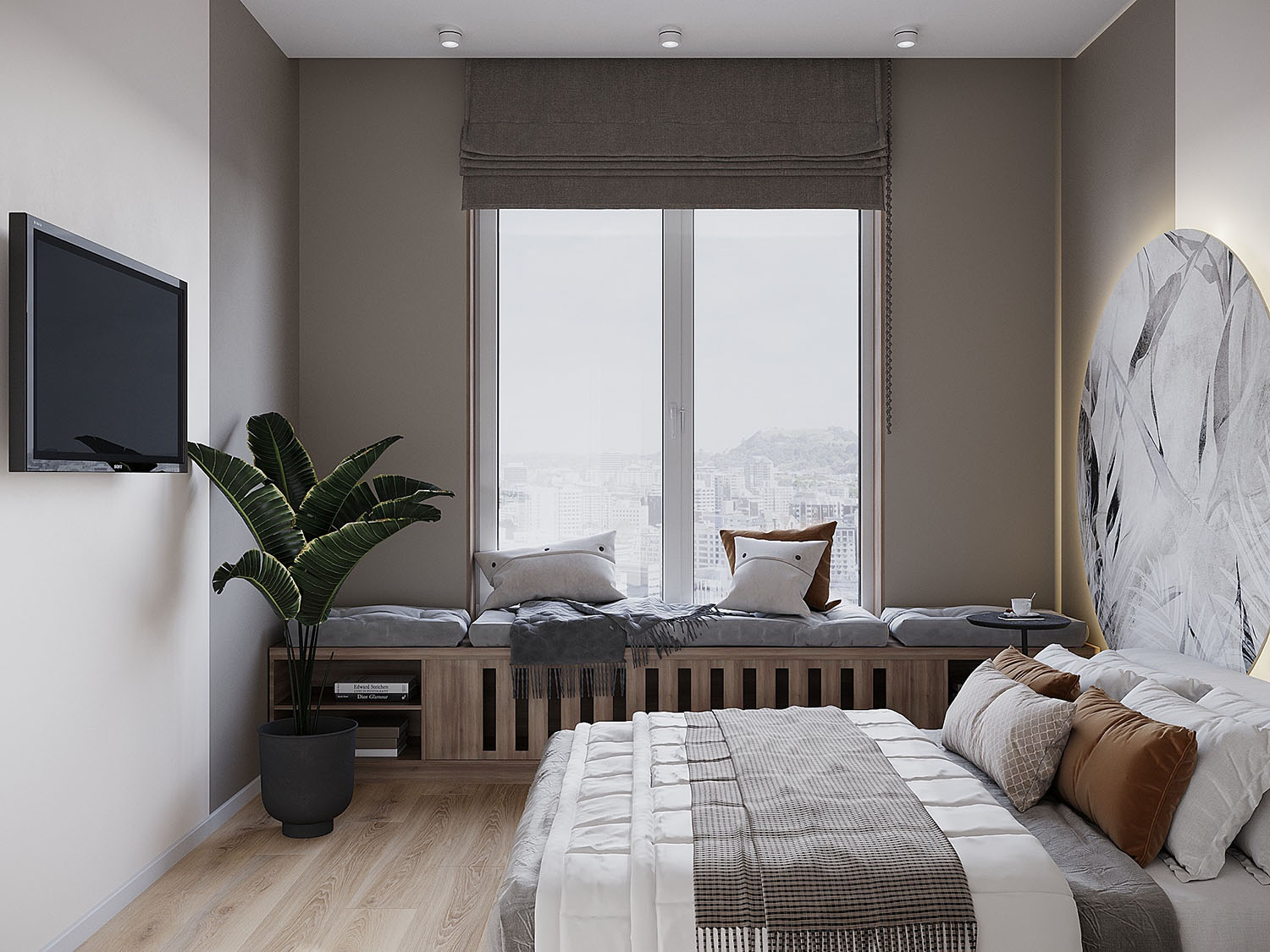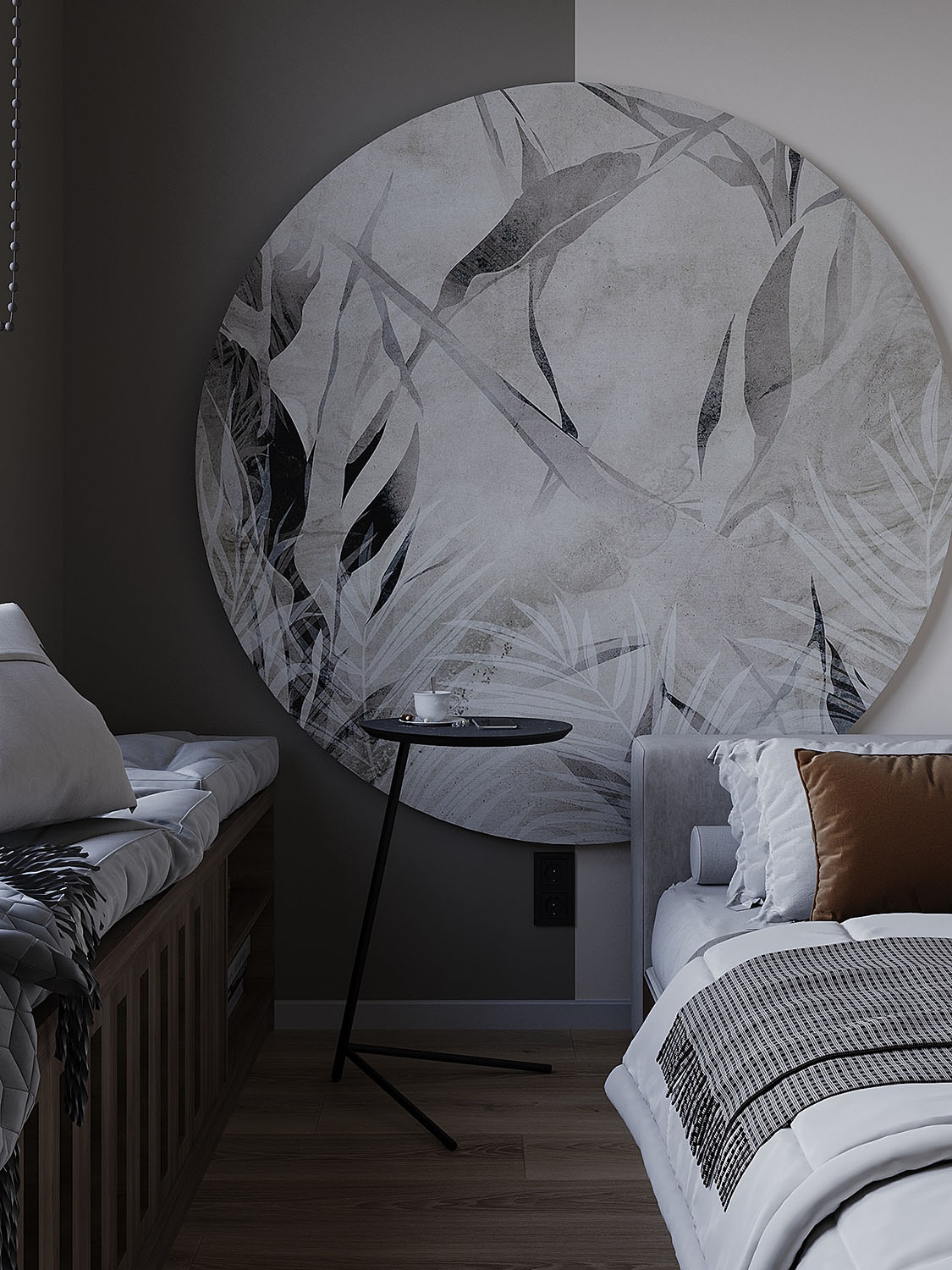 Интерьер спальни в квартире под сдачу в аренду в ЖК «ALIA». Задача была — сделать квартиру с элементами минимализма, светлую, унисекс, для проживания одного или двух человек. НеоКартина из коллекции Air оживила интерьер, отлично вписавшись в цветовую гамму комнаты.