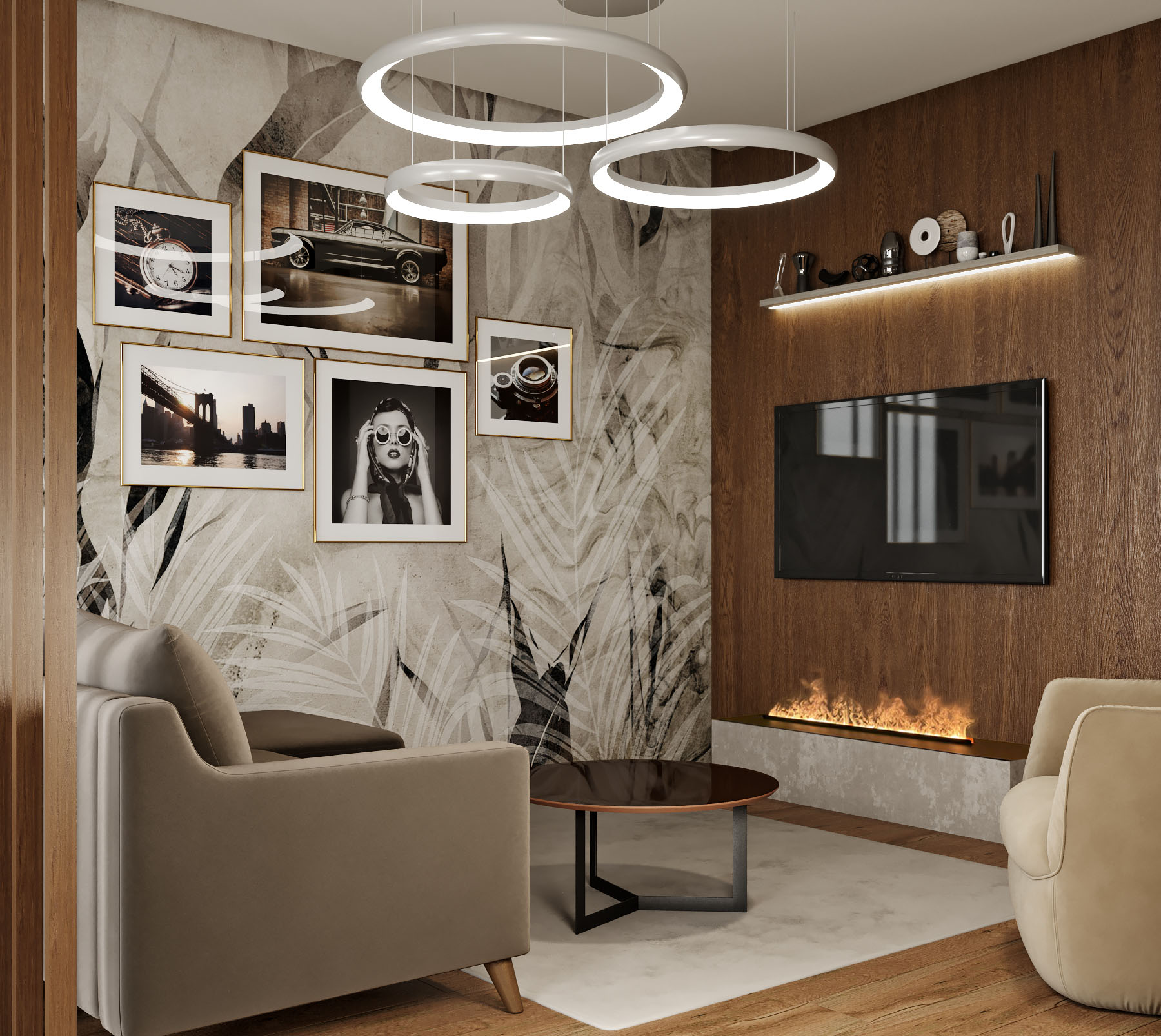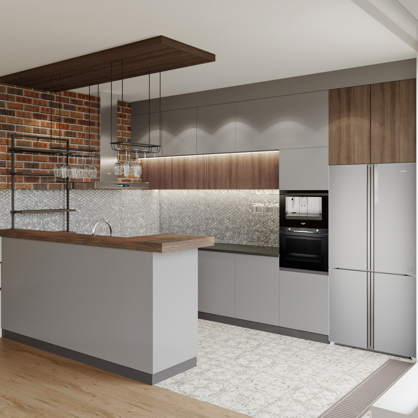 Заказчикам было интересно получить проект современного интерьера с элементами стиля Лофт. Спокойные цветовые сочетания, удобство планировки и функциональность пространства.