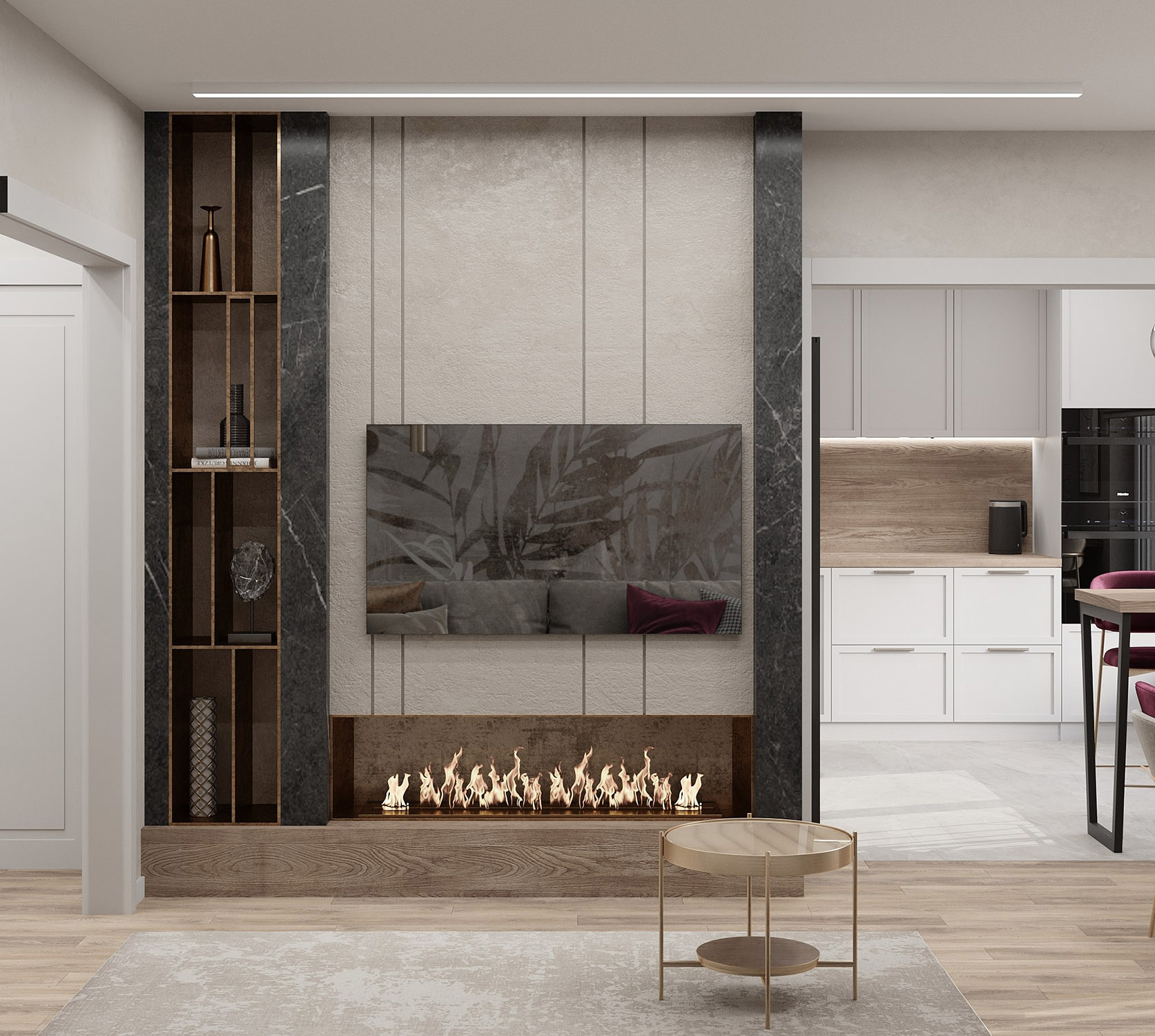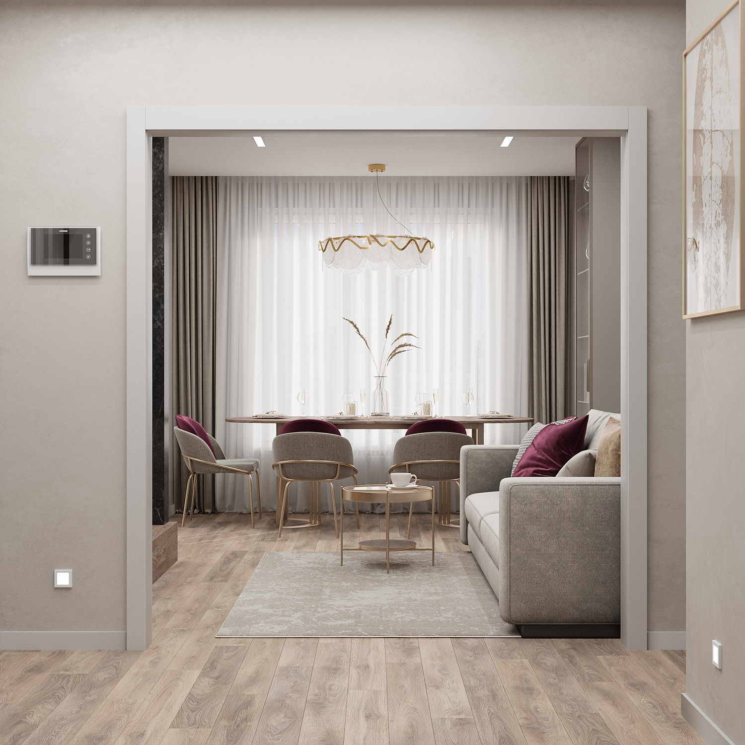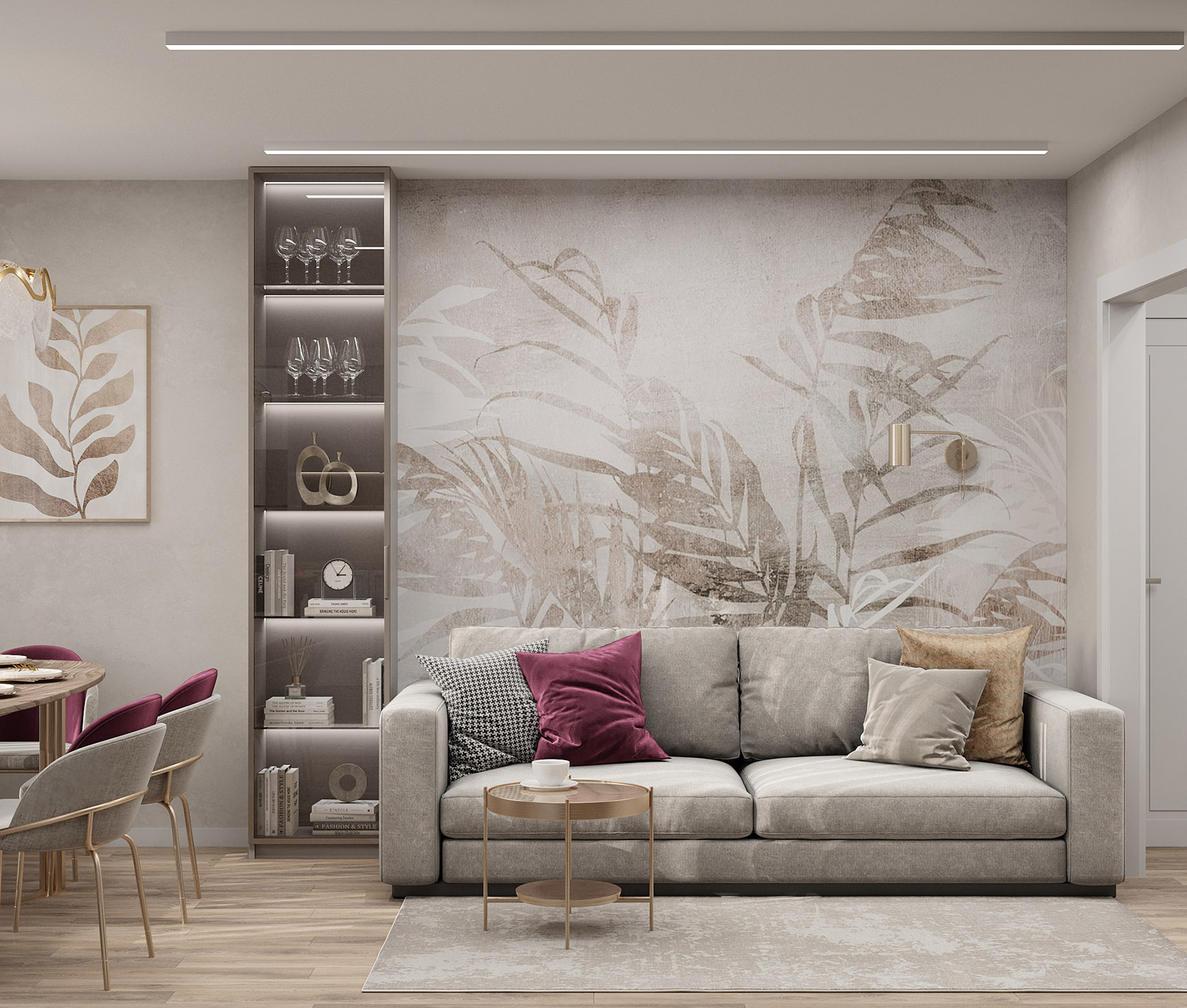 Светлая гостиная с обоями Air