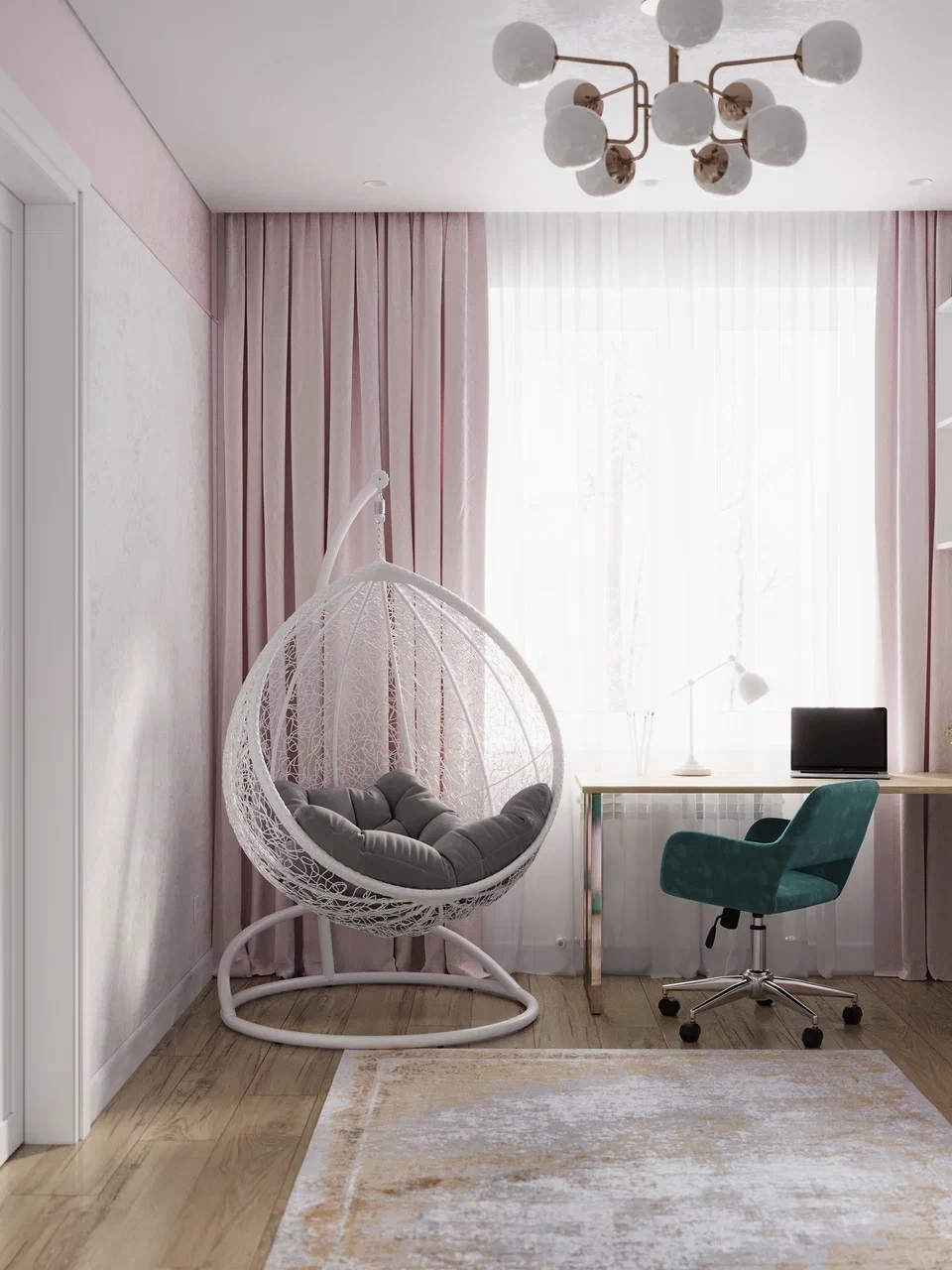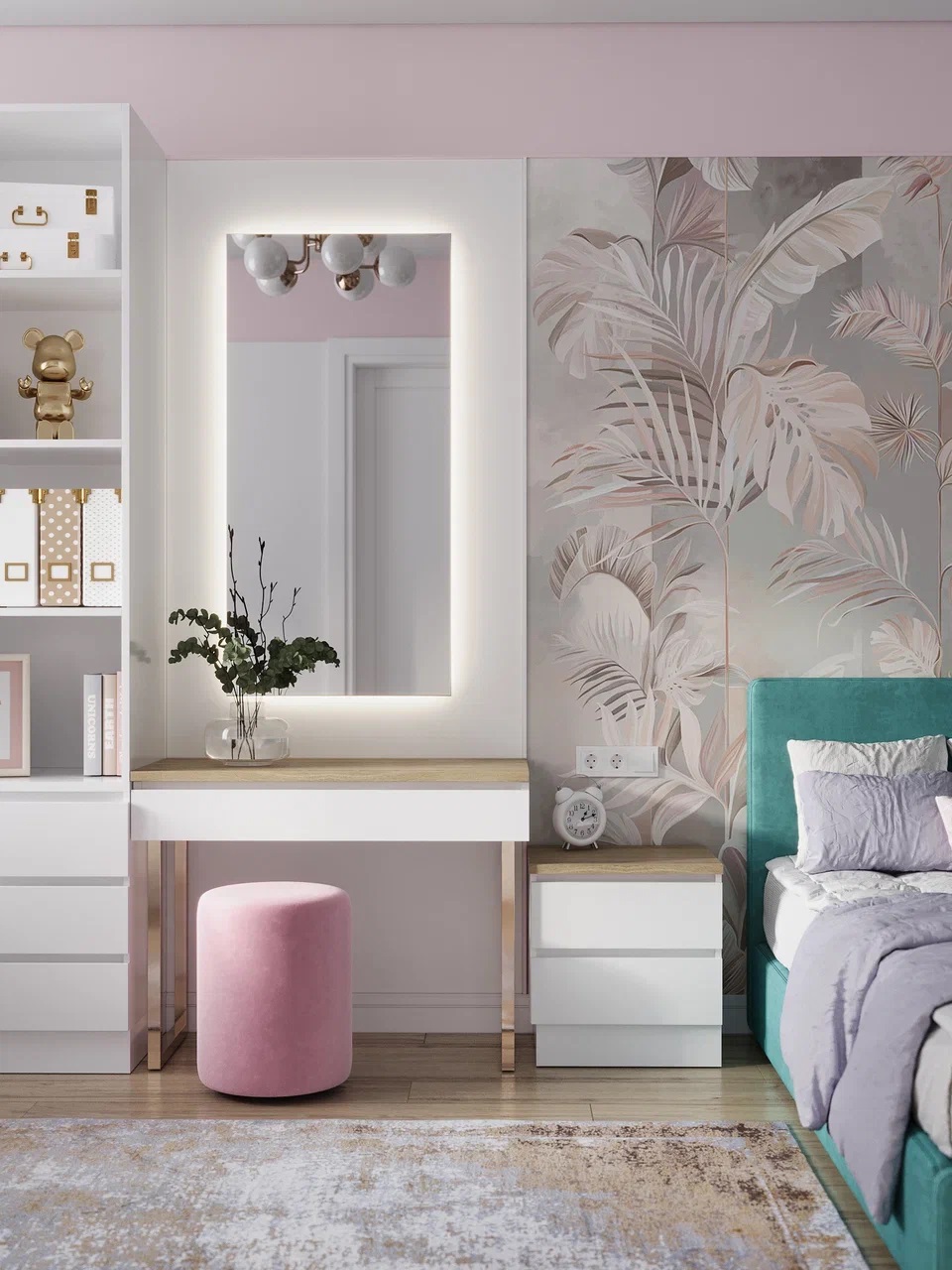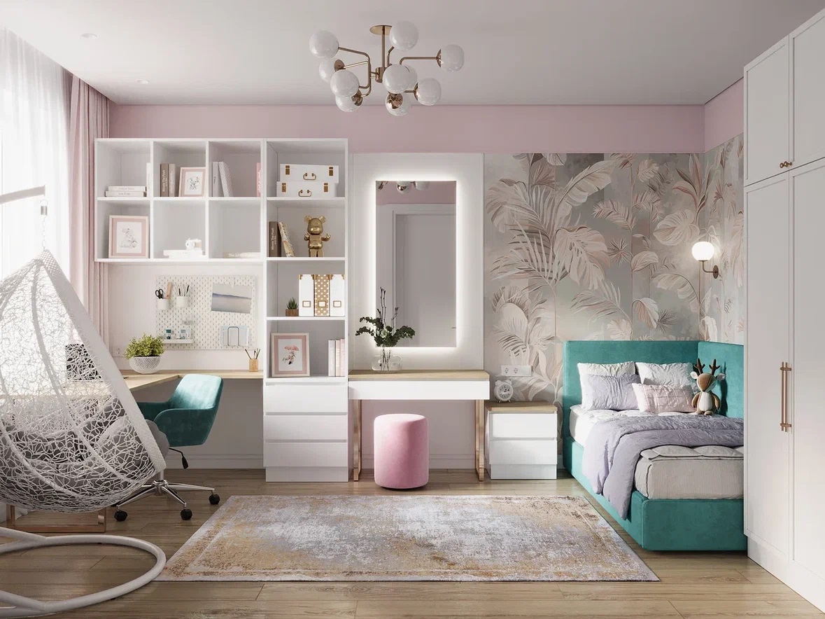 В какой комнате лучше использовать акцентные обои? В любой, в которой хочется! В данном проекте разместили их в детской, выделив зону спального места. Коллекция ALEXANDRA добавила комнате нежности и сделала ее более просторной.