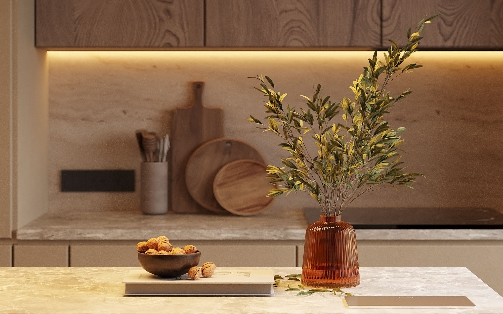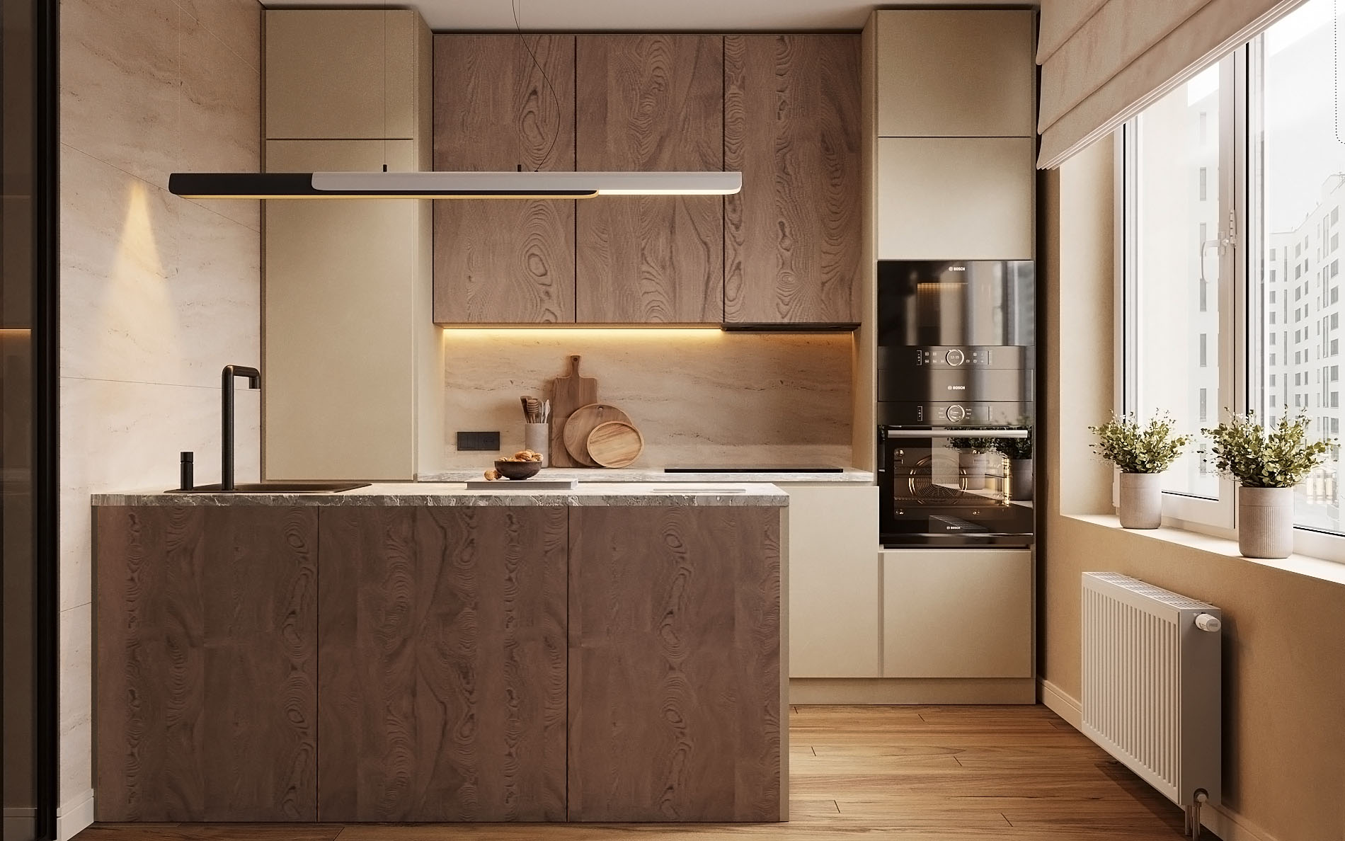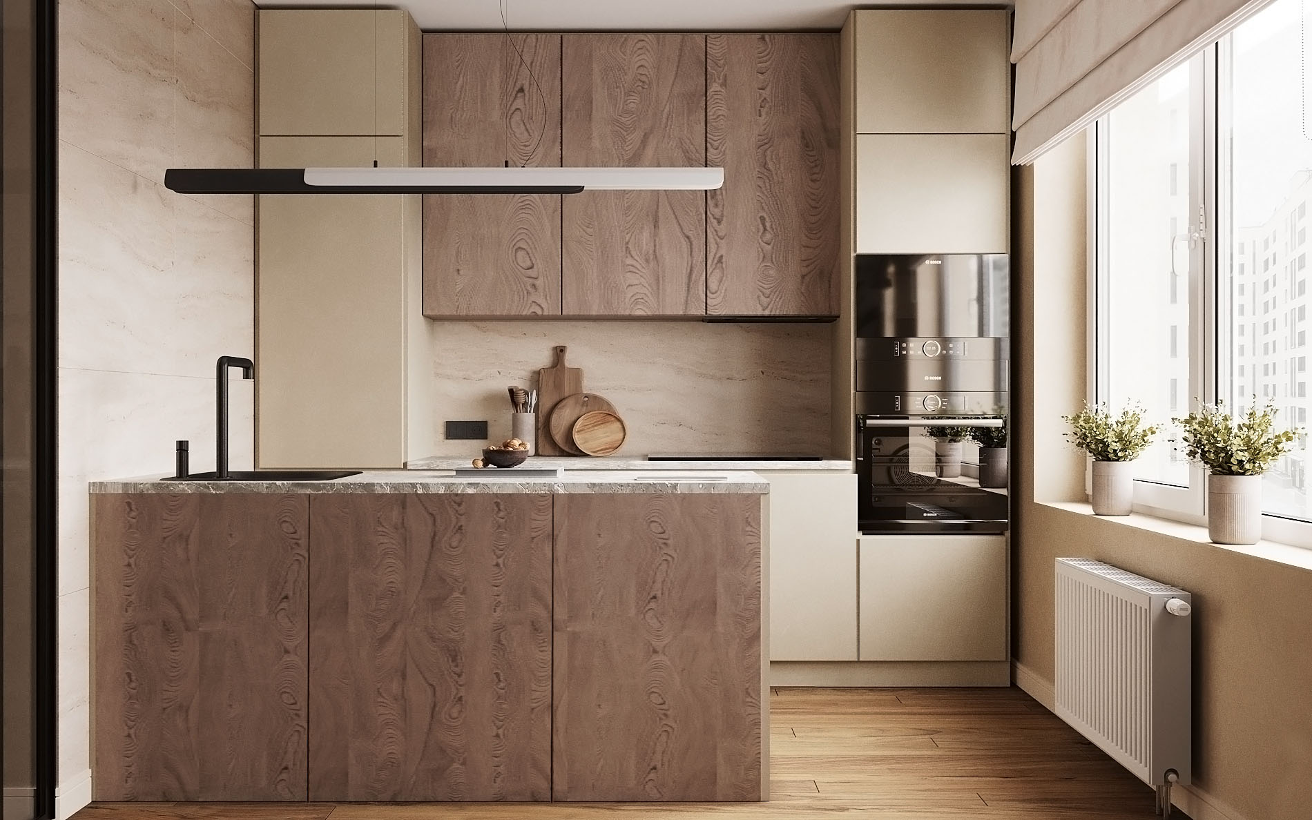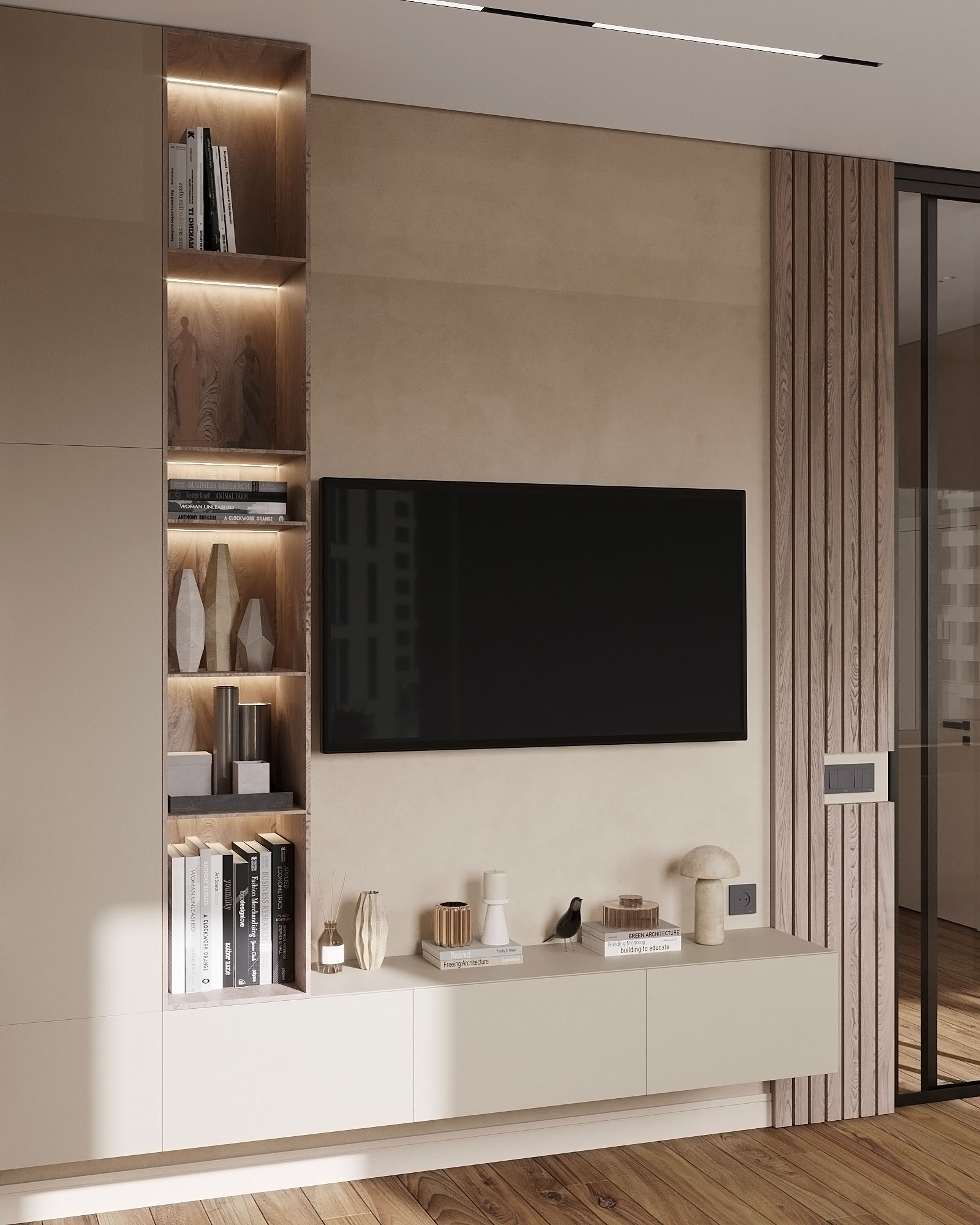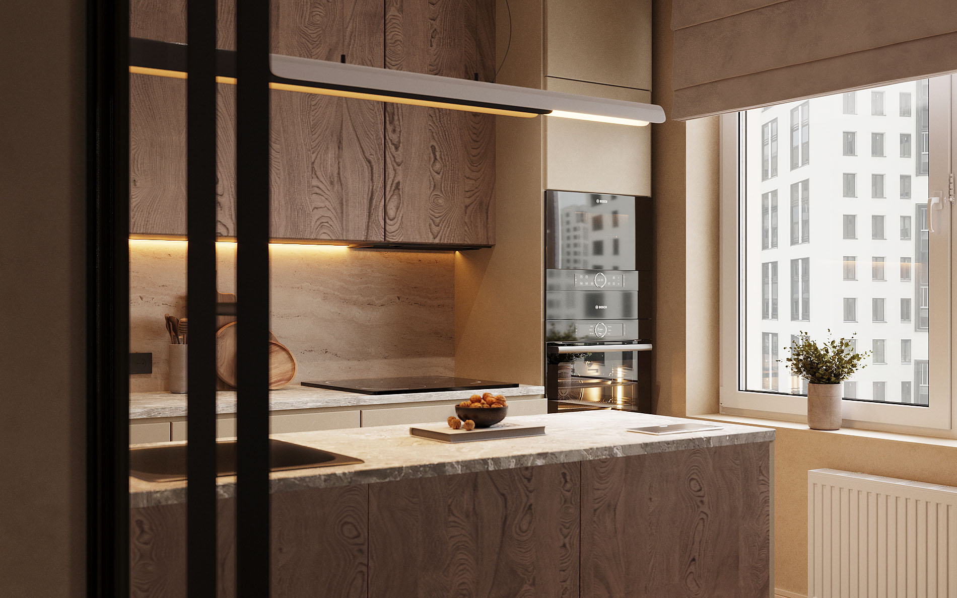 Проект в ЖК «Галактика PRO» в городе Санкт-Петербург для семьи из трех человек. Главным пожеланием заказчиков было оформление квартиры в монохромных бежевых тонах. В кухне-гостиной выделили акцентную стену необычными обоями из коллекции «Alive 22», которые гармонично дополнили интерьер.