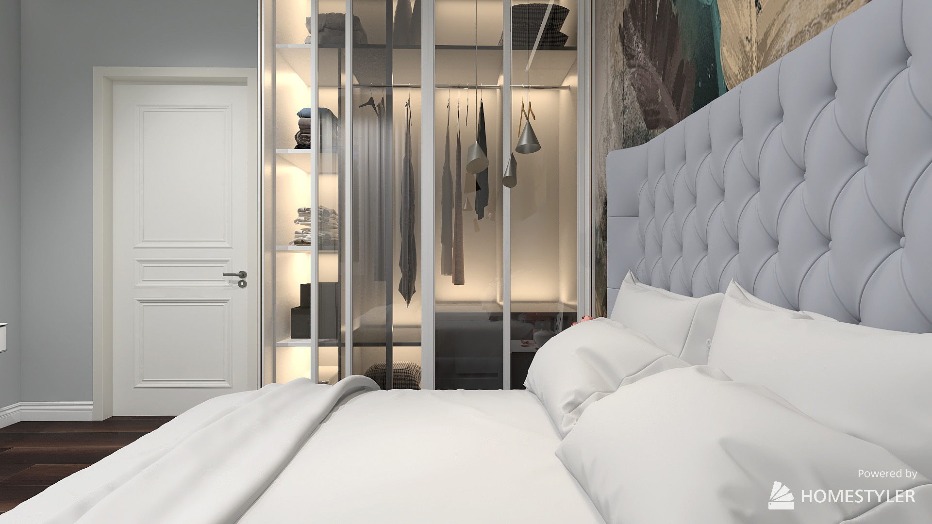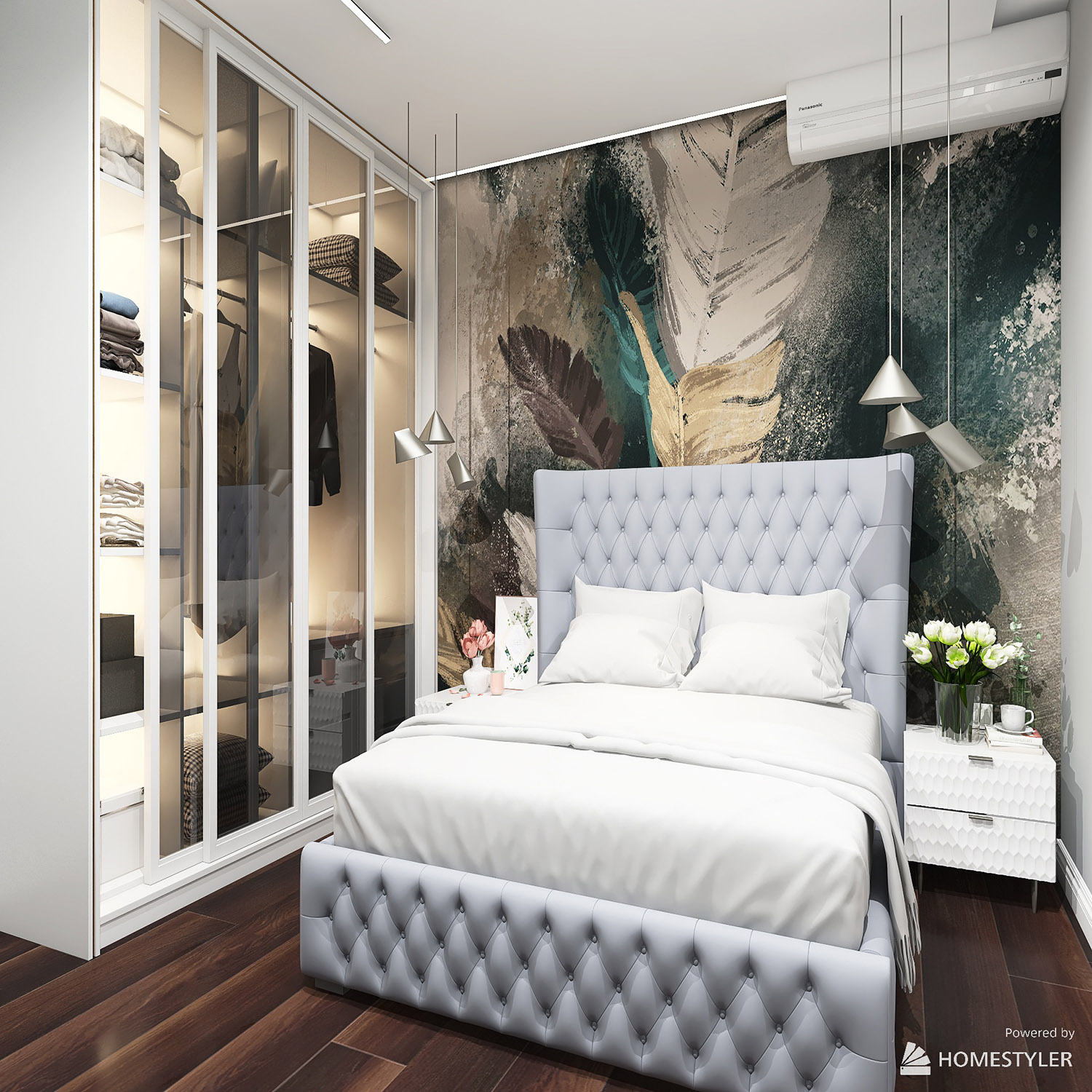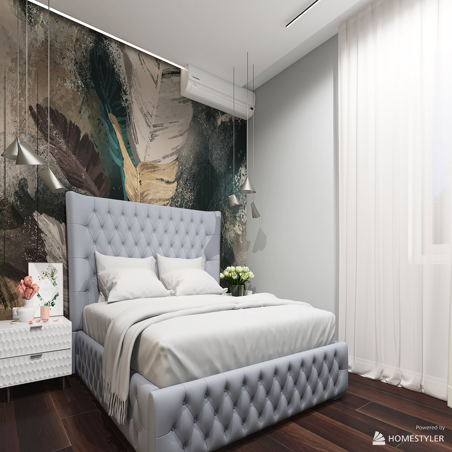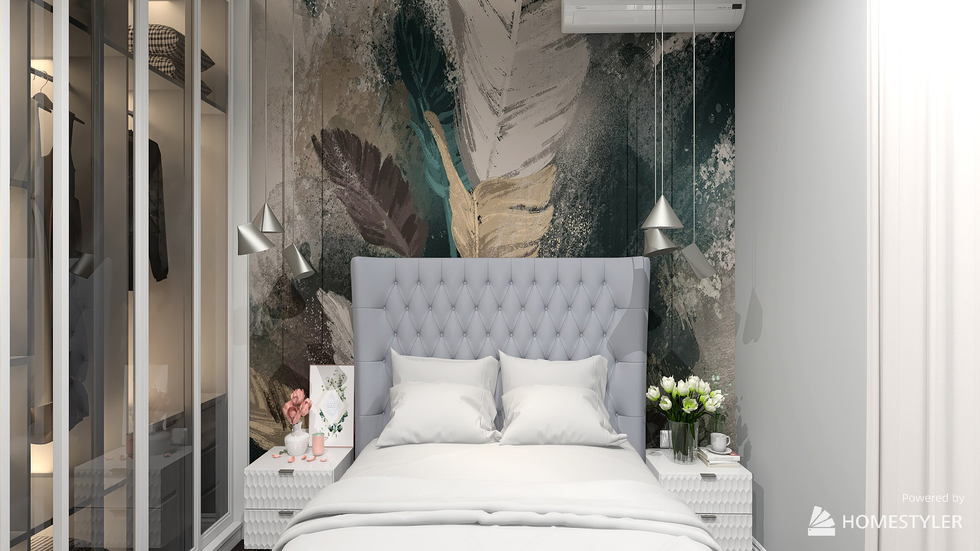 Светлая спальня с яркими обоями