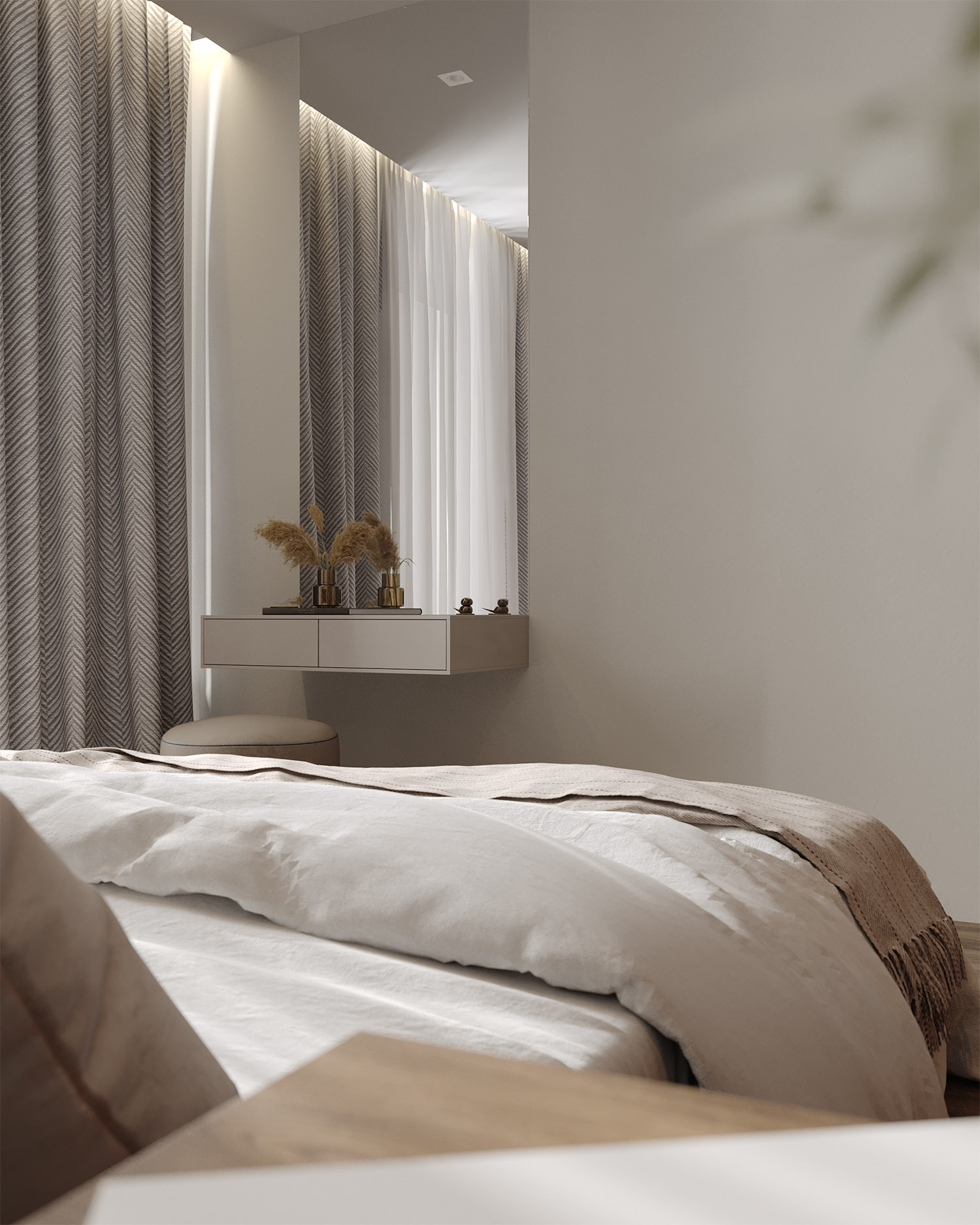 Спальня из проекта двухкомнатной квартиры для семьи с ребенком