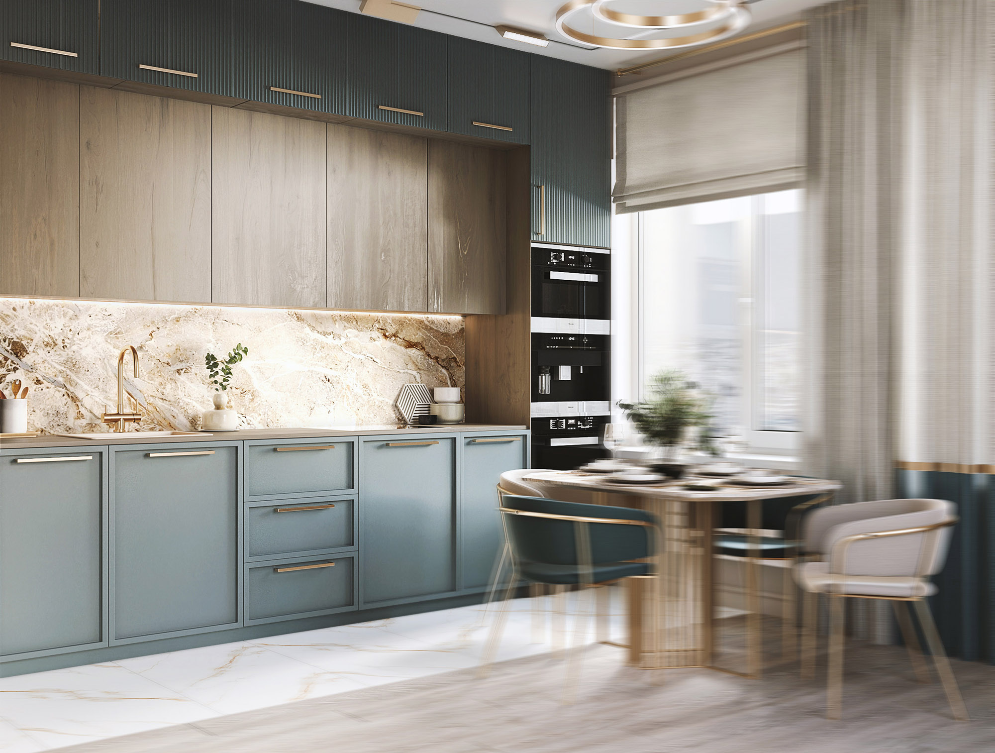 Фреска Alive в интерьере кухни-гостиной
