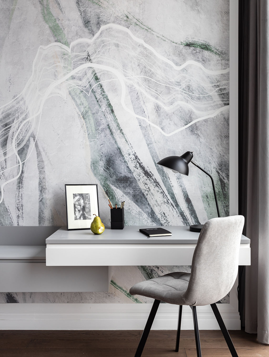 В интерьер этой спальни выбрали обои из коллекции Alive, адаптировав изображение под запросы заказчика. Широкие мазки, спокойные тона и растительные мотивы — что может быть лучше для искателей умиротворения? Подарите себе покой и гармонию, воплощённую в этой удивительной коллекции!