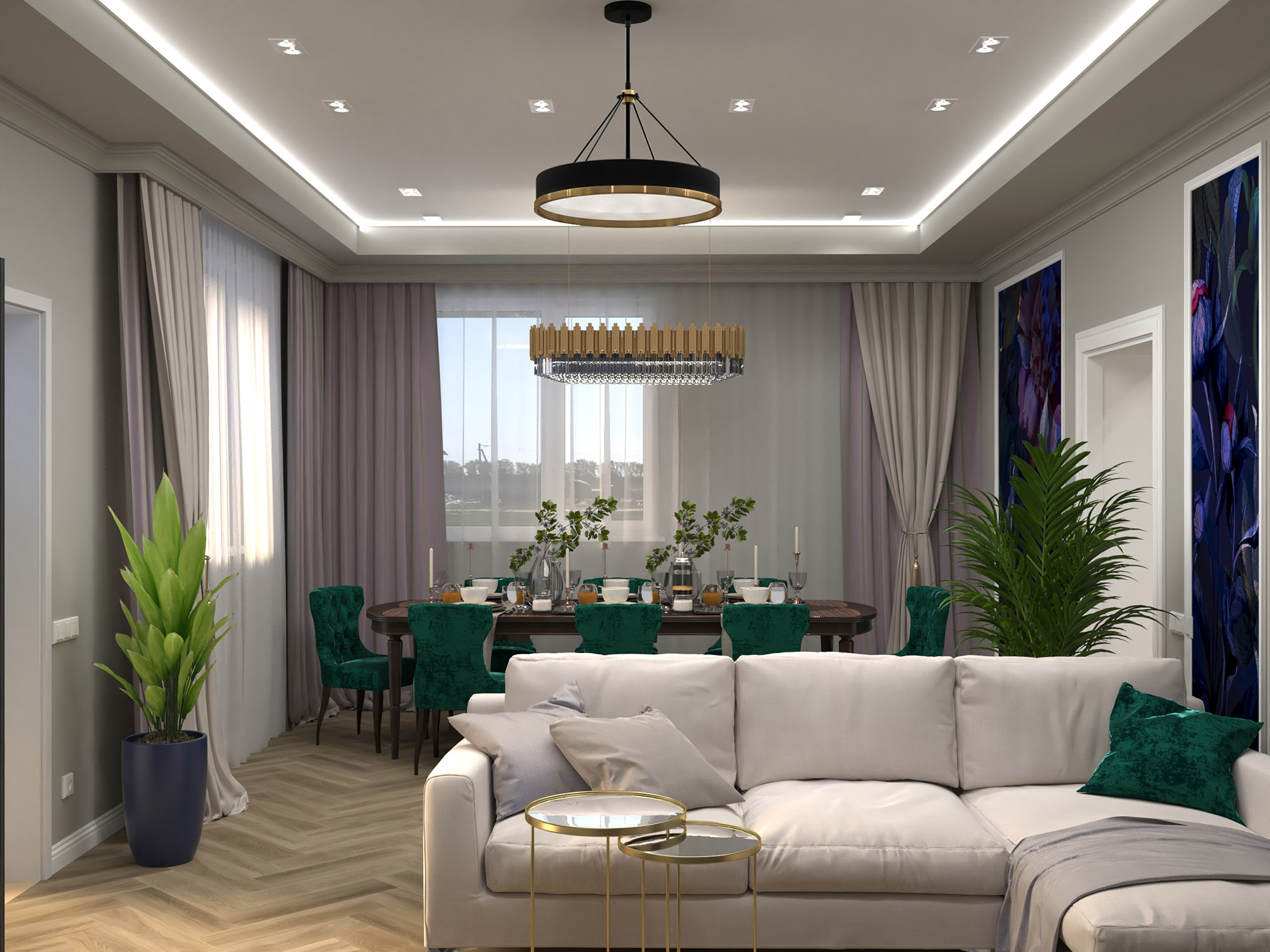 Гостиная в загородном доме площадью 30 м². Место встречи и притяжения всех членов семьи. Перед автором проекта стояла непростая задача: объединить вкусы и желания трёх поколений домовладельцев! В результате удалось угодить каждому и создать торжественную атмосферу.