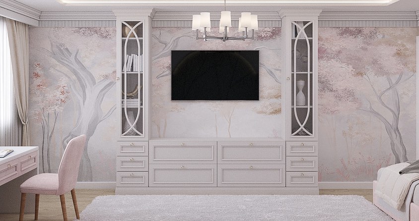 Детская комната для маленькой принцессы в ЖК «Симфония», г. Краснодар. Обои из коллекции ARBRE 22. Основная художественная задумка коллекции — сочетание классических пейзажных сюжетов, популярных для традиционных фресок и скандинавской стилистики. Такие сюжеты подходят тем, кто хочет придать интерьеру нежность, воздушность, расширить пространство и создать ощущение, что находишься на природе, но при этом не готов к фотопринтами и предпочитает классику.