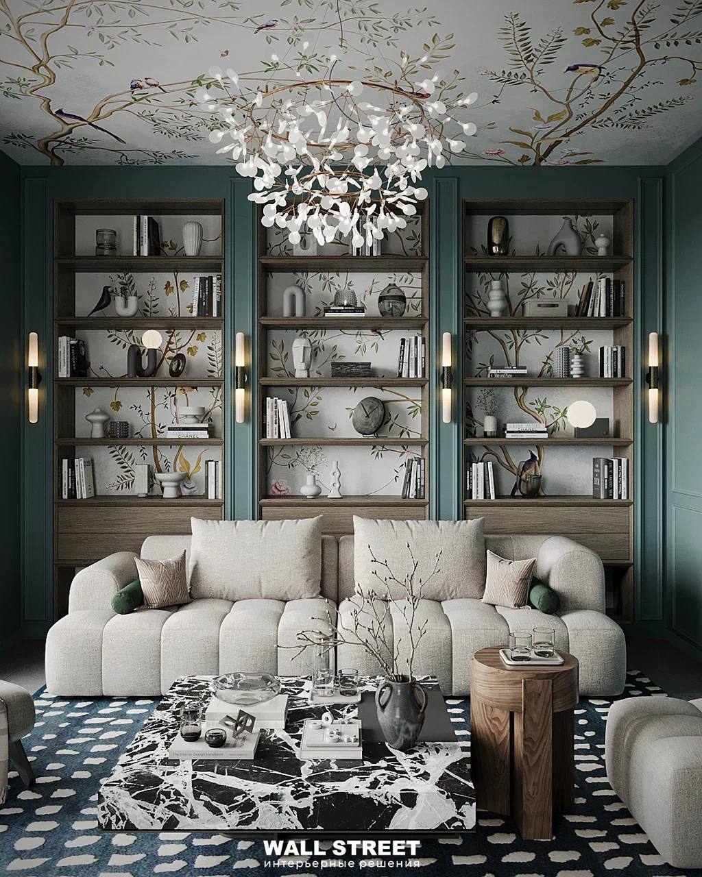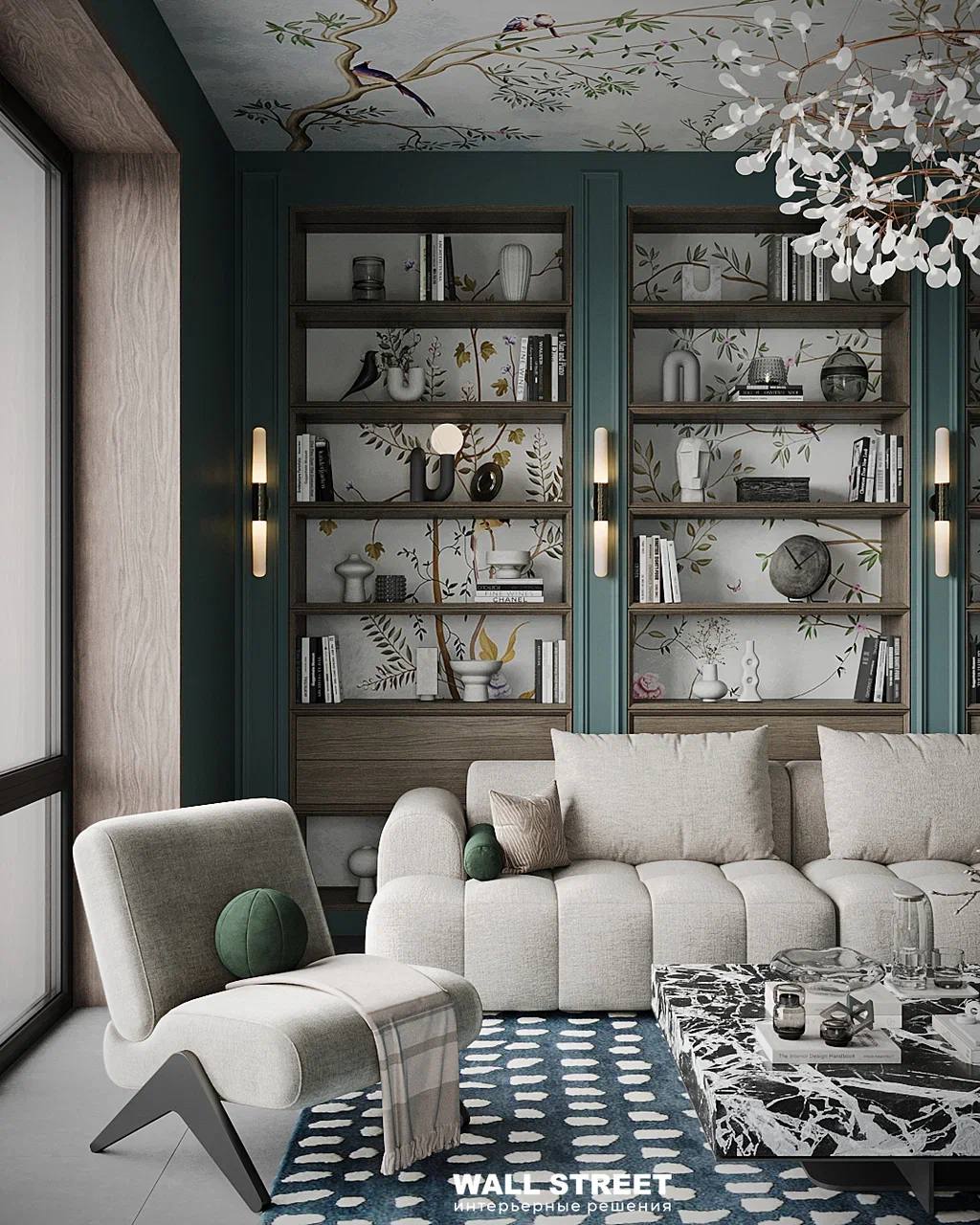 В этом проекте обои с росписью по типу шинуазри, но не на стене, а на потолке. Почему?
