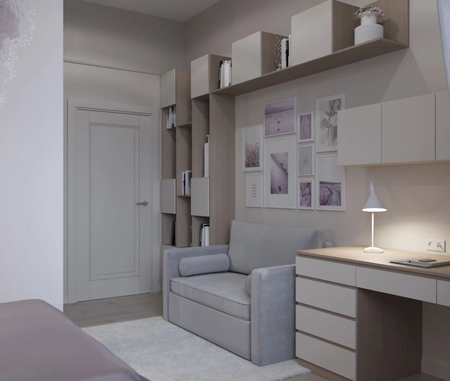 Дизайн детской комнаты из проекта частного дома в г. Михайловск. Обои из коллекции ASTRAL 22. Необычные формы, плавные извивающиеся линии вводят в легкий транс и успокаивают. Коллекция подходит для интерьеров, в которых задействовано мало деталей. Акцентная стена компенсирует минималистичность комнаты и делает ее более яркой и наполненной.