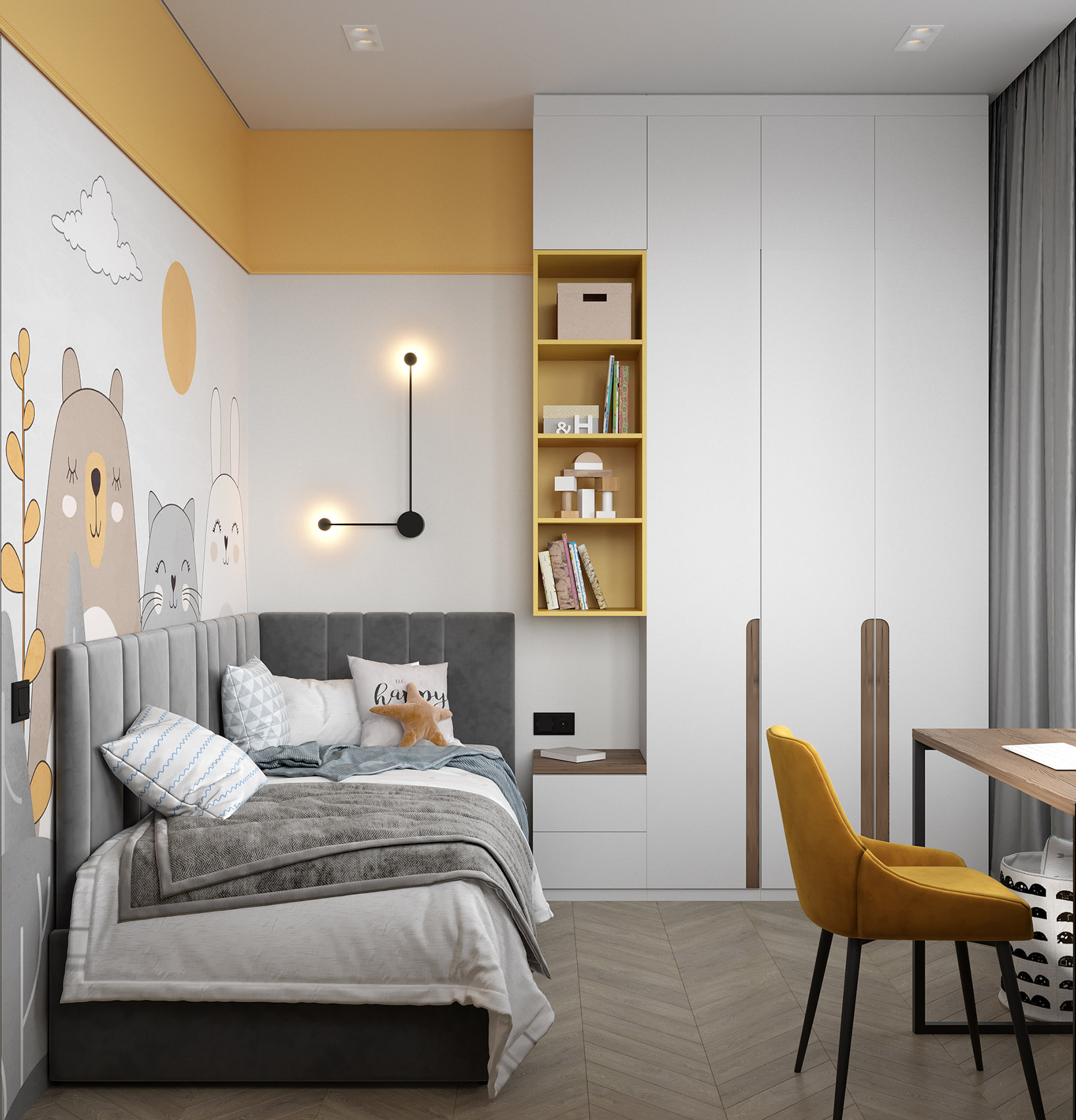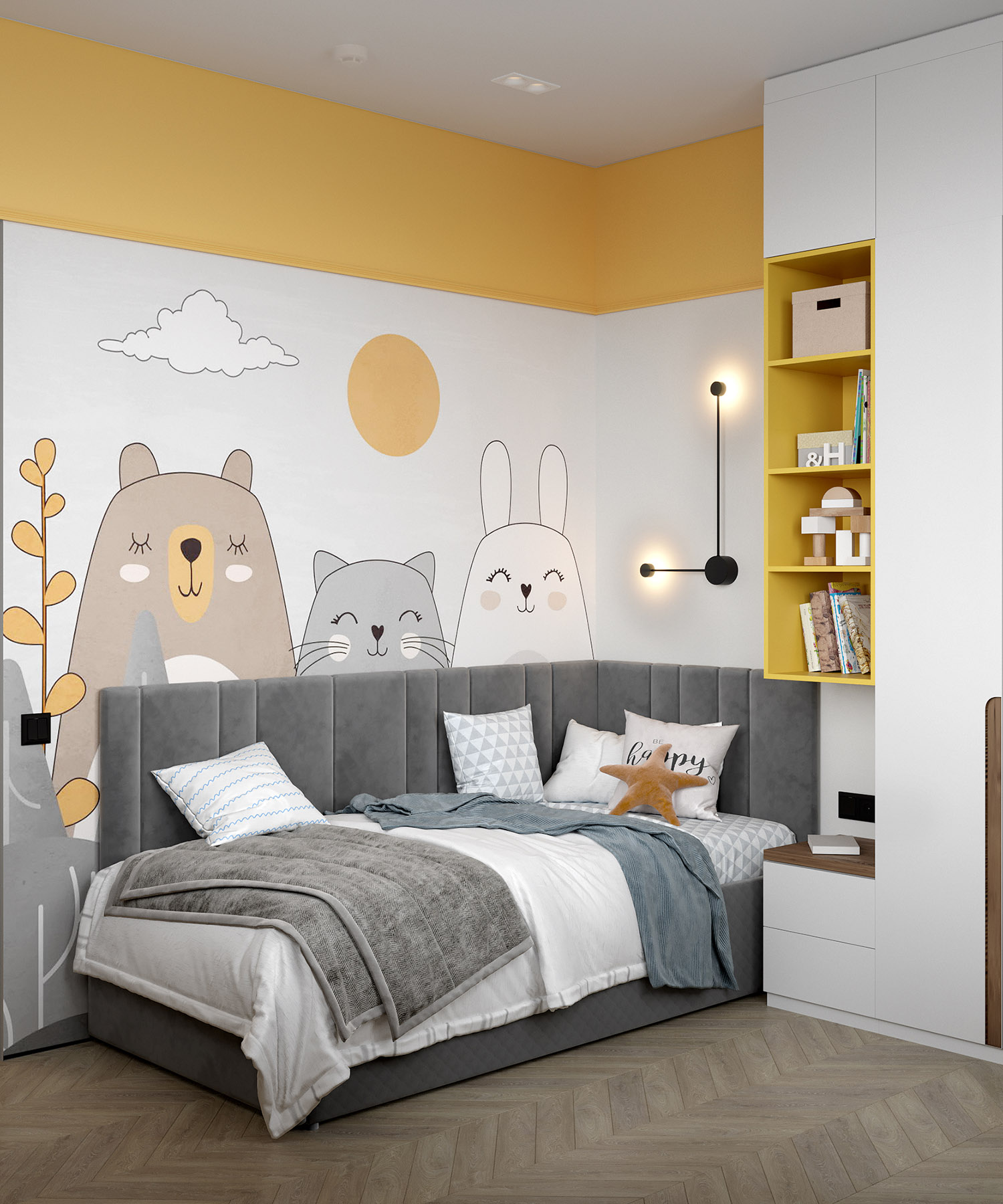 Небольшая, но очень светлая детская c милыми обоями из коллекции «Big Little» в проекте для молодой семьи из Москвы. Сказочные принты этой коллекции перенесут маленького хозяина комнаты в далекие страны и познакомят с чудесными персонажами — лисичками и мишками, зайчиками и котиками — благодаря красочному «мультяшному» стилю.