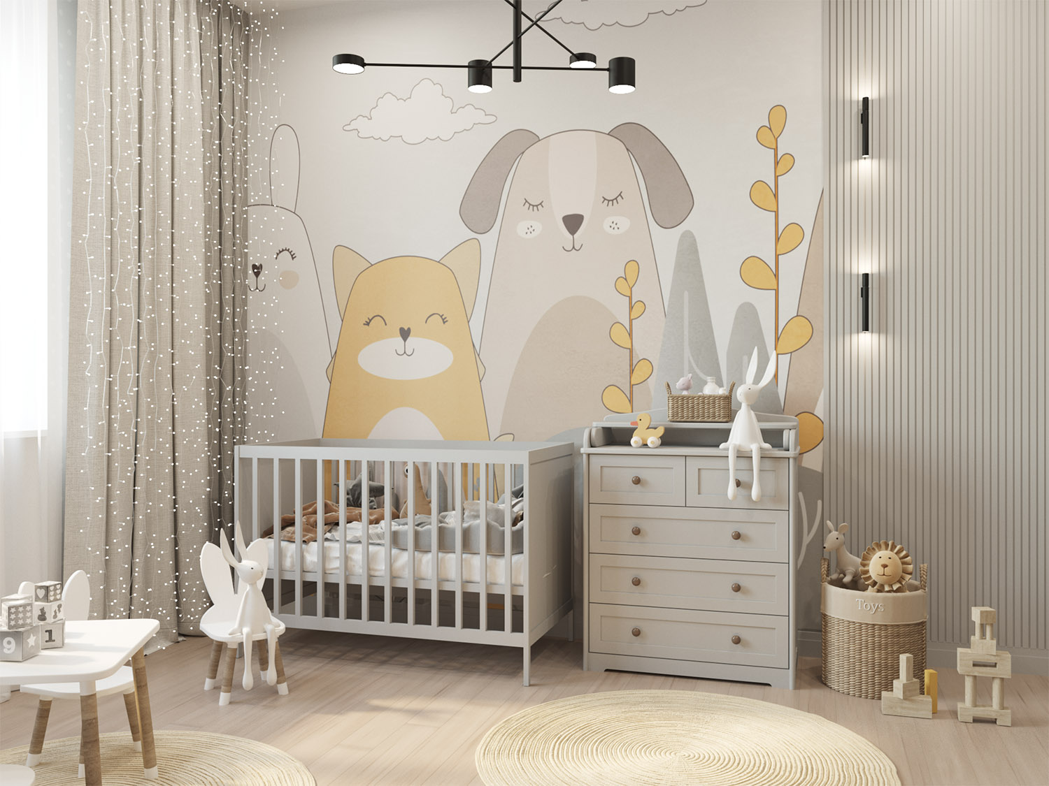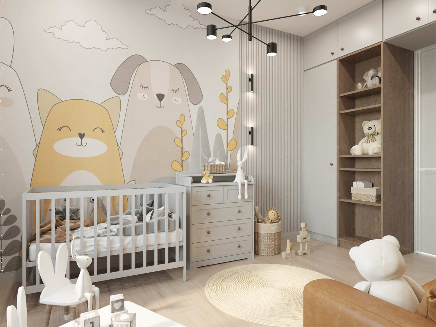 Оранжевый цвет способен улучшать настроение, бодрить, настраивать на общение и даже на решение математических задачек. Не случайно в самой жизнерадостной детской песне всё – от мамы до верблюдов — в глазах ребенка было оранжевым. И пусть в реальной жизни «окрасить целый свет» этой краской не получится, зато детскую комнату – запросто! В этой детской для маленького мальчика обои с оранжевыми деталями сочетаются с покраской остальных стен в более спокойный оттенок. Такой фон не уменьшит пространство, создаст эффект подсветки от солнечных лучей и не будет излишне тонизировать малыша.