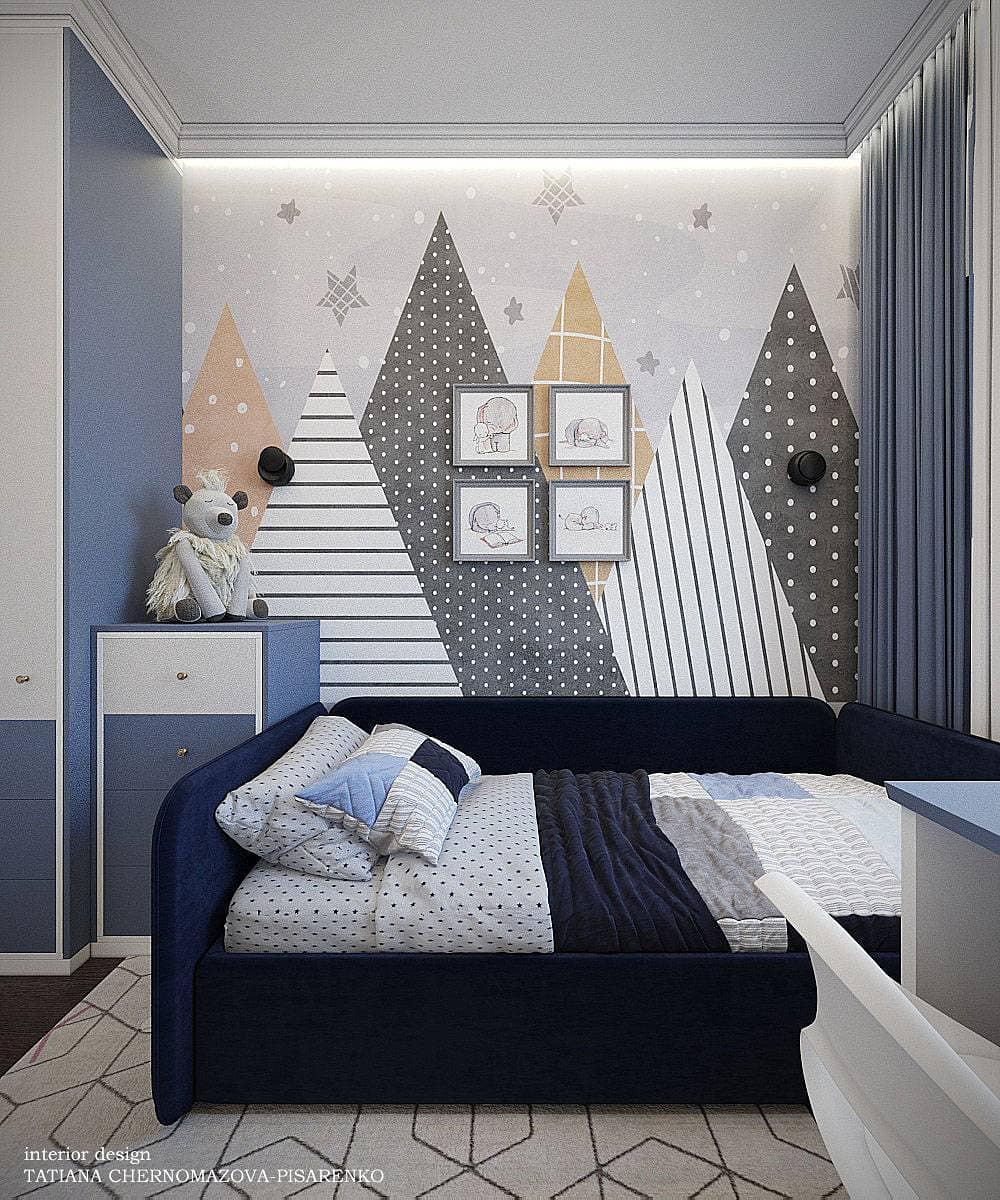 Маленькая, уютная и вместительная детская комната из проекта в ЖК Next. Обои из коллекции BIG LITTLE. Сказочные вершины принтов Big Little перенесут маленького хозяина комнаты в далекие страны и познакомят с чудесными персонажами – лисичками и мишками, зайчиками и котиками – благодаря красочному «мультяшному» стилю. Яркие и пастельные, абстрактные и реалистичные обои в коллекции помогут вам создать идеальную детскую, исходя из темперамента и характера ребенка. Горы в сочетании с плюшевыми животными, домами и самолетами – это универсальные сюжеты, которые подойдут как в комнату мальчика, так и девочки.
