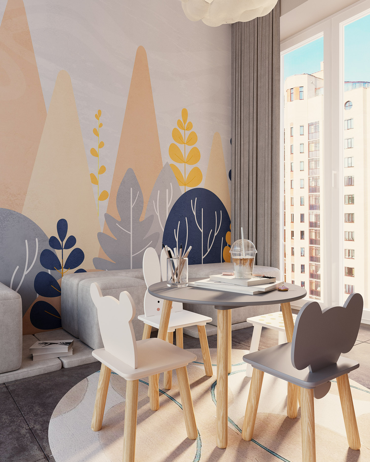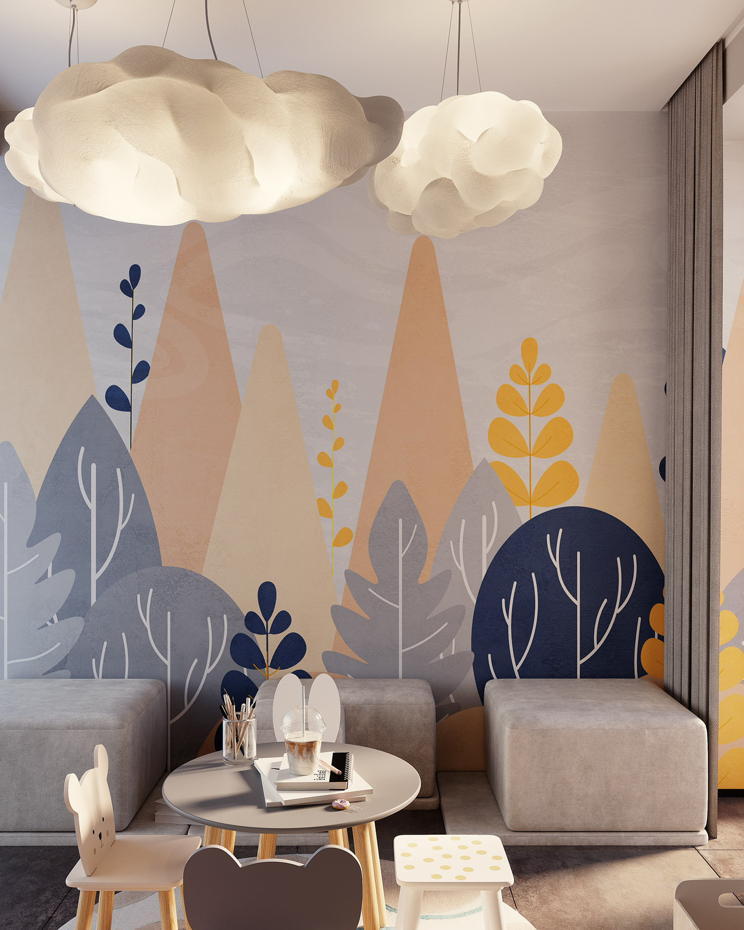 Проект небольшого детского уголка в ресторане г. Владивосток. Площадь помещения — 6,3 м². Обои из коллекции «Big Little». Яркие и пастельные, абстрактные и реалистичные обои в коллекции помогут вам создать идеальную детскую!