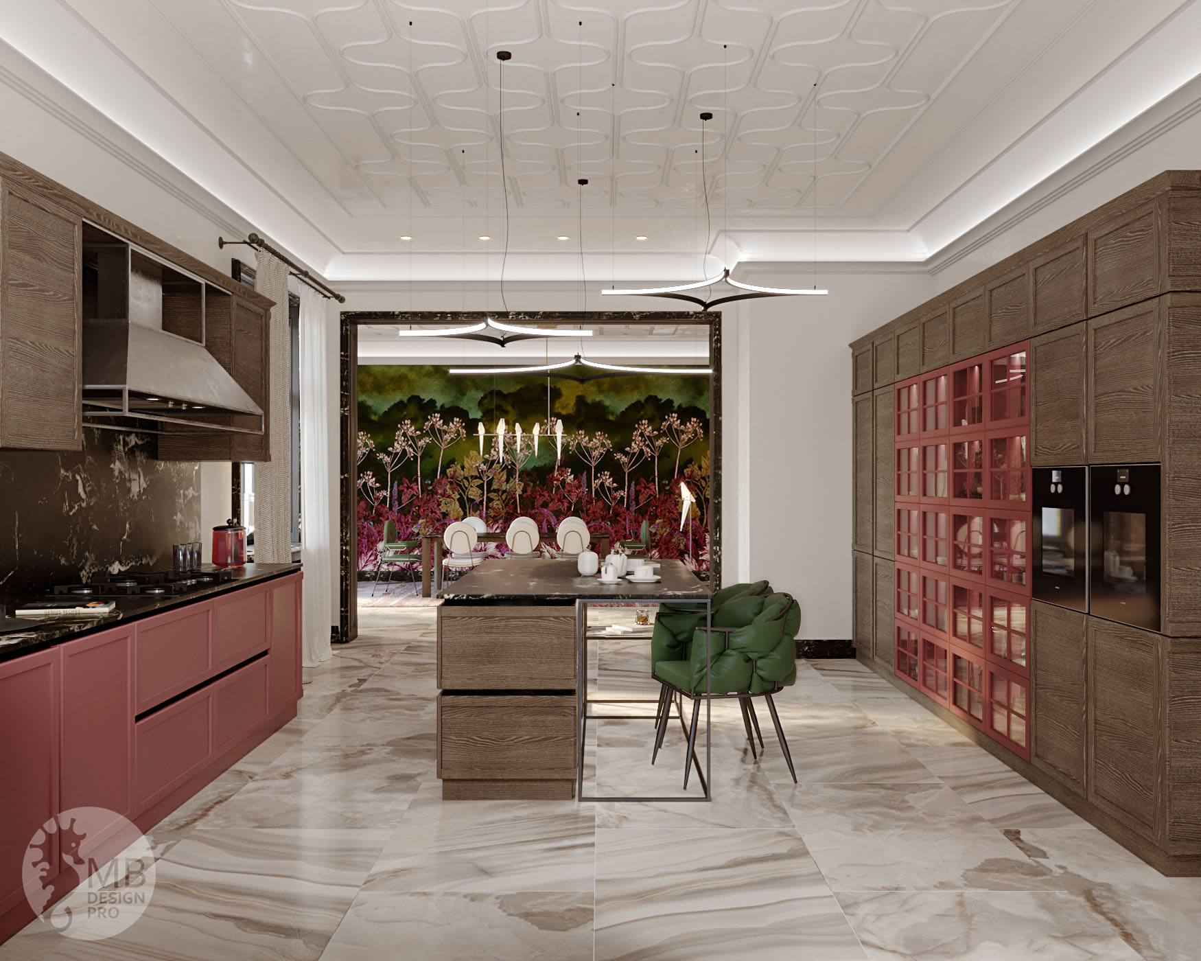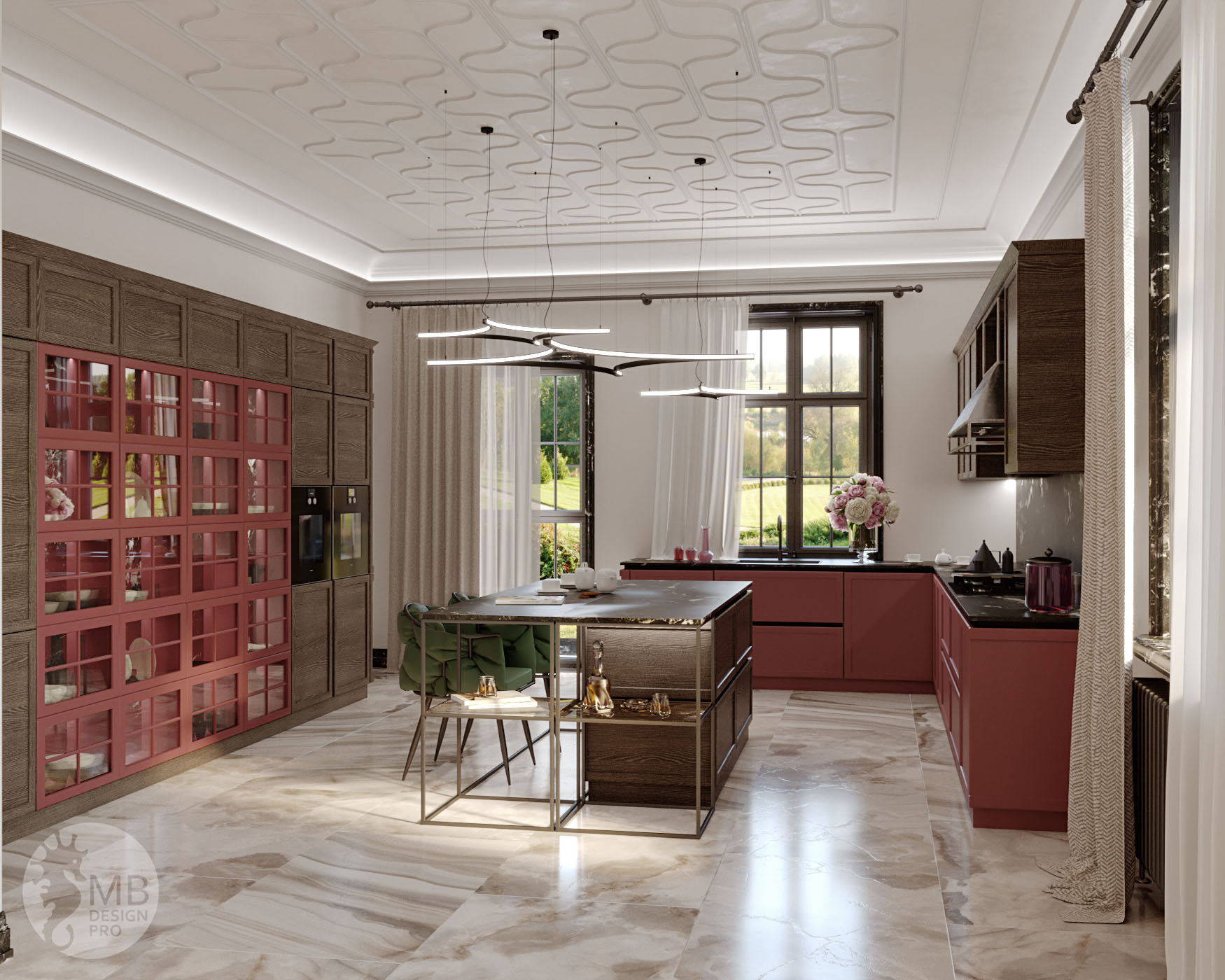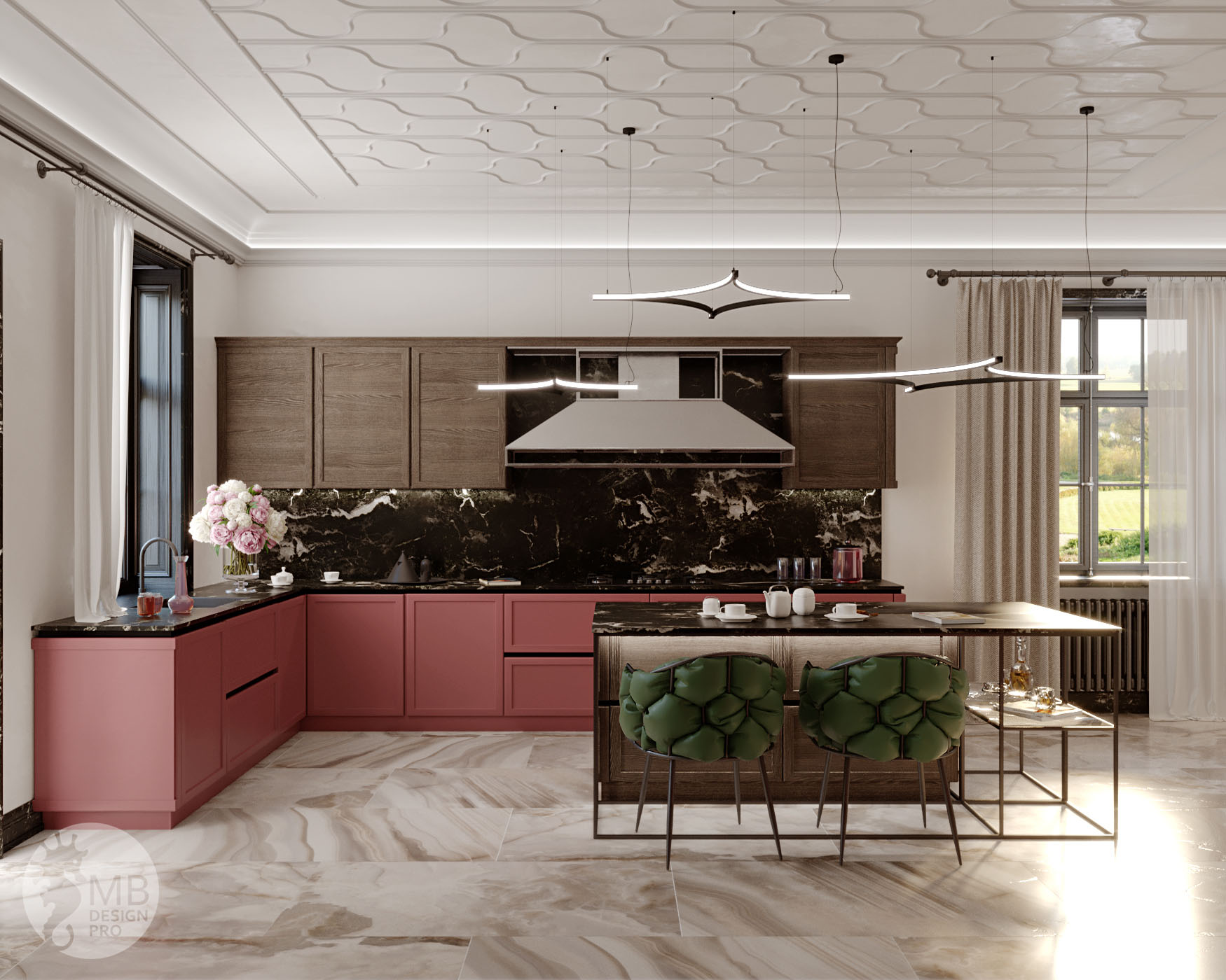 «Современно сегодня и завтра!» Этот интерьер реализован с использованием сразу нескольких стилей, детали которых так приятно находить, разглядывая изображения проекта. За счет хорошего цветового баланса интерьер не надоест ни сегодня, ни завтра. Благородный припыленный брусничный цвет в сочетании с сероватым оттенком дерева и контрастными черными деталями, придающими интерьеру глубину, вместе формируют интересный и элегантный стиль.