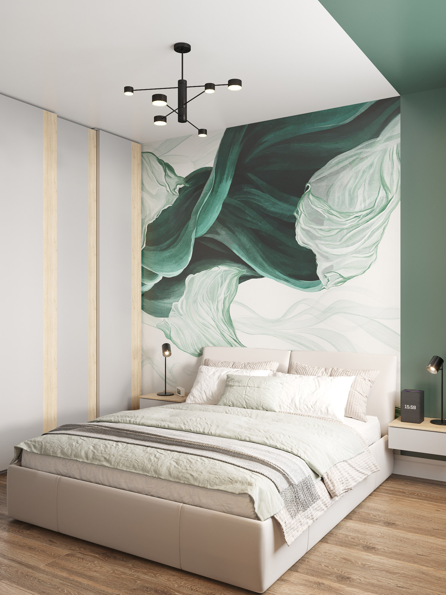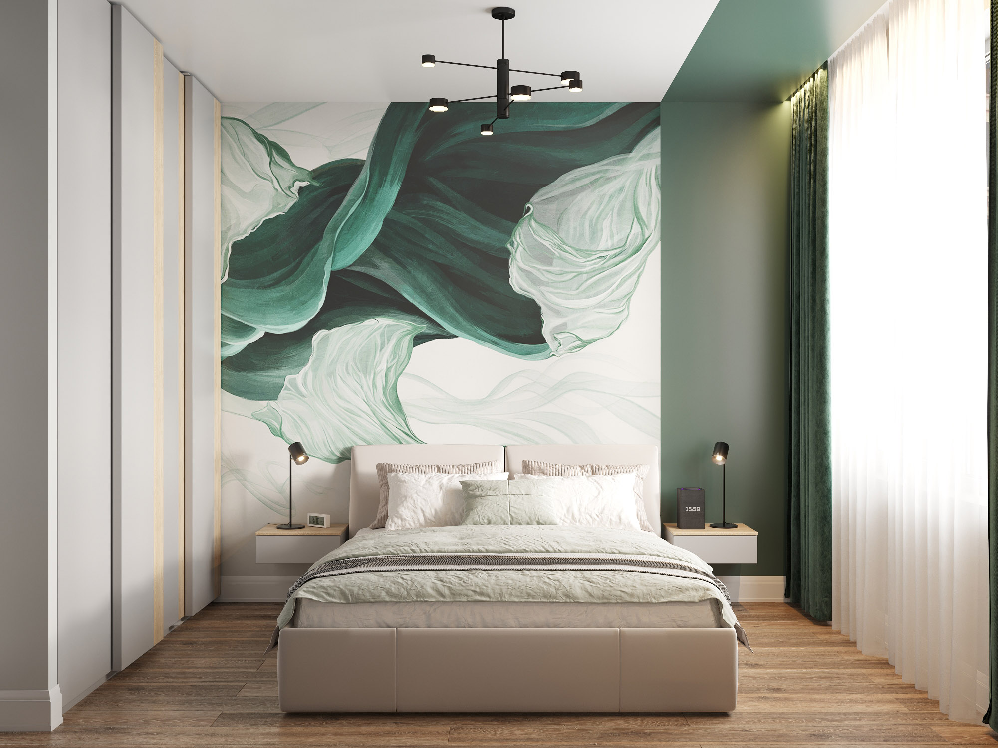 Интерьер спальни с обоями Breeze