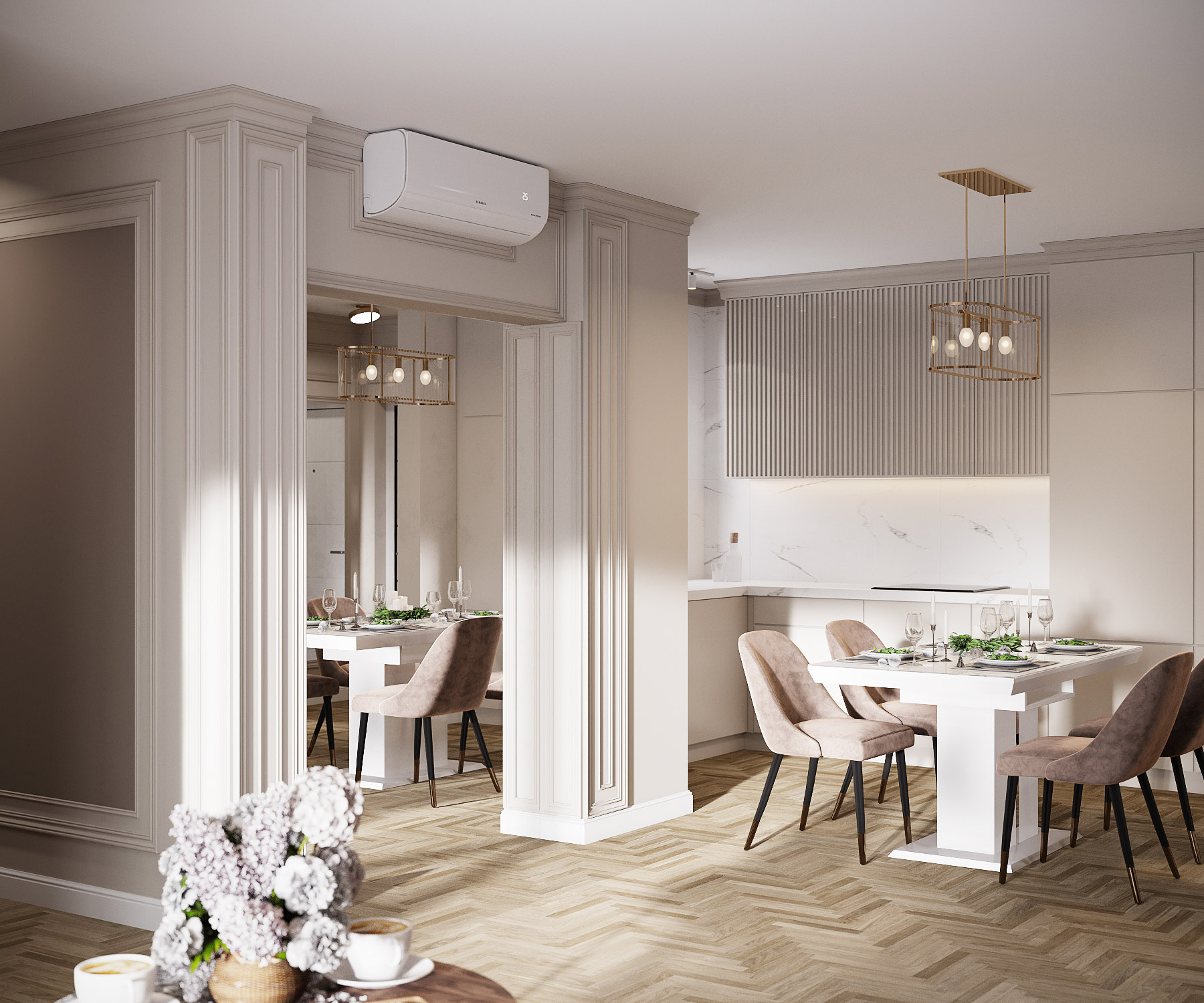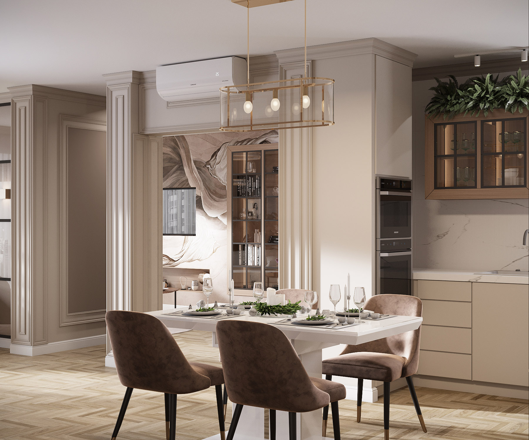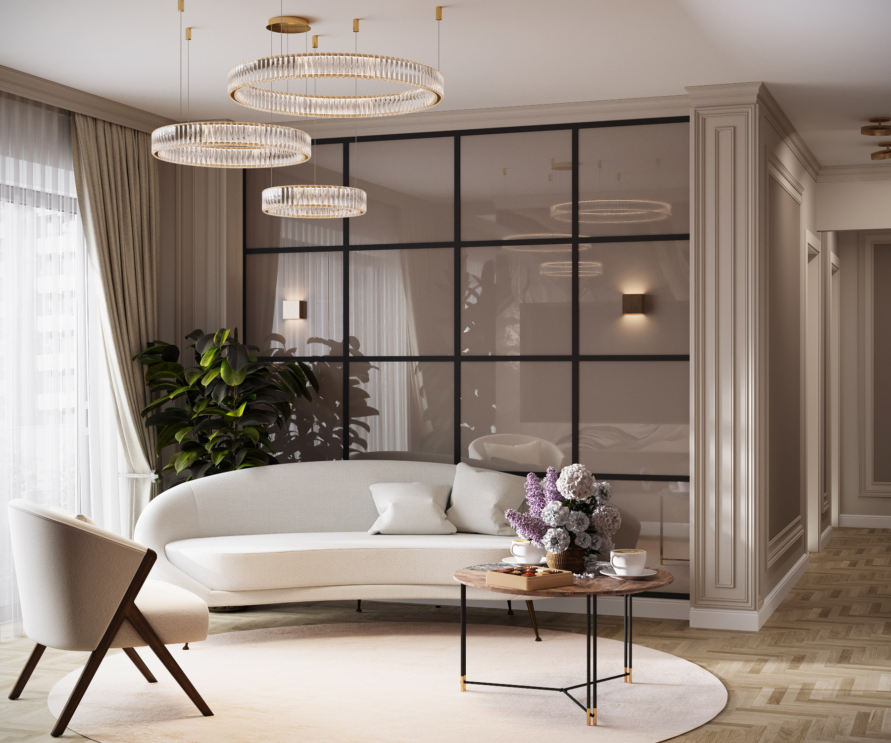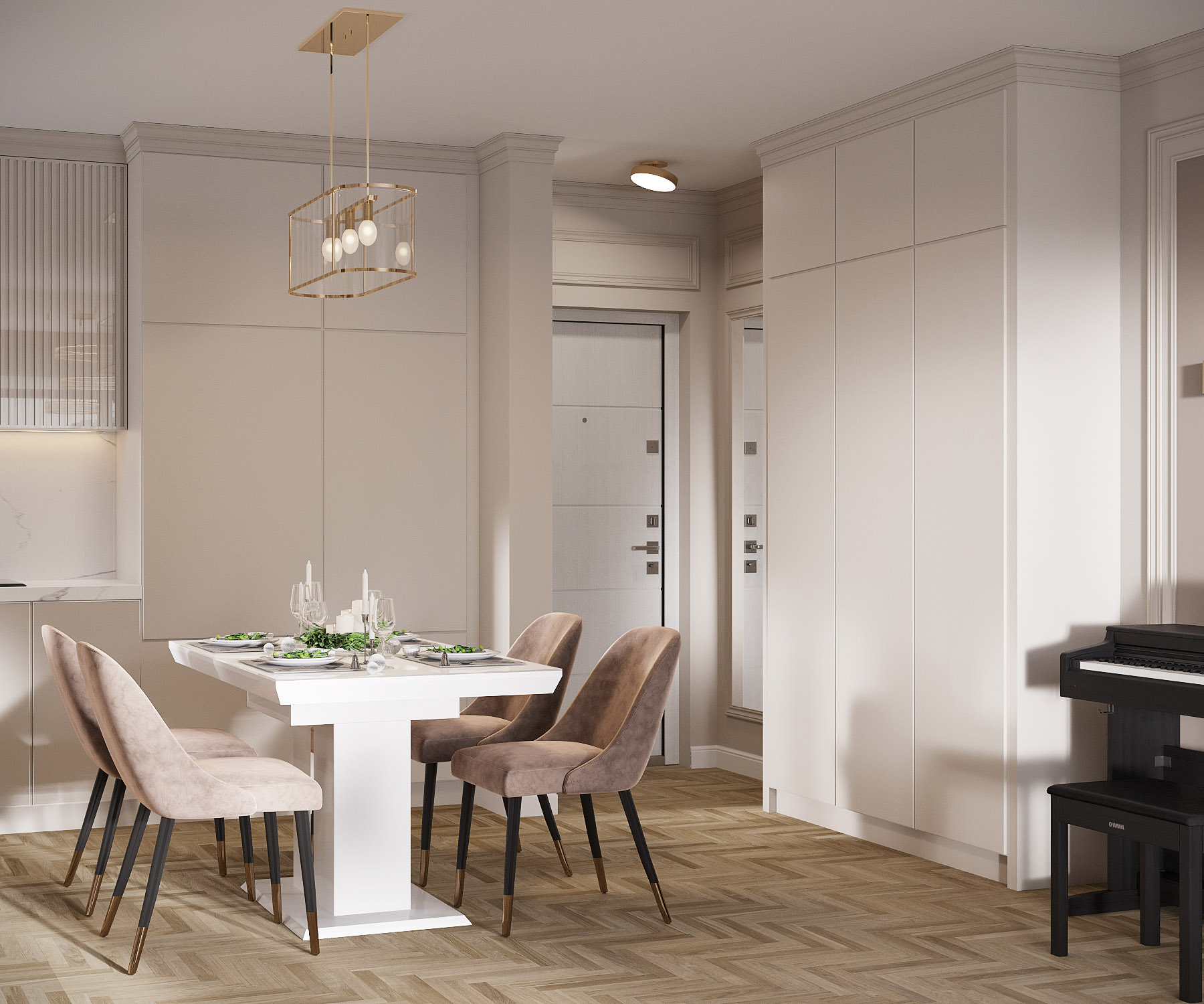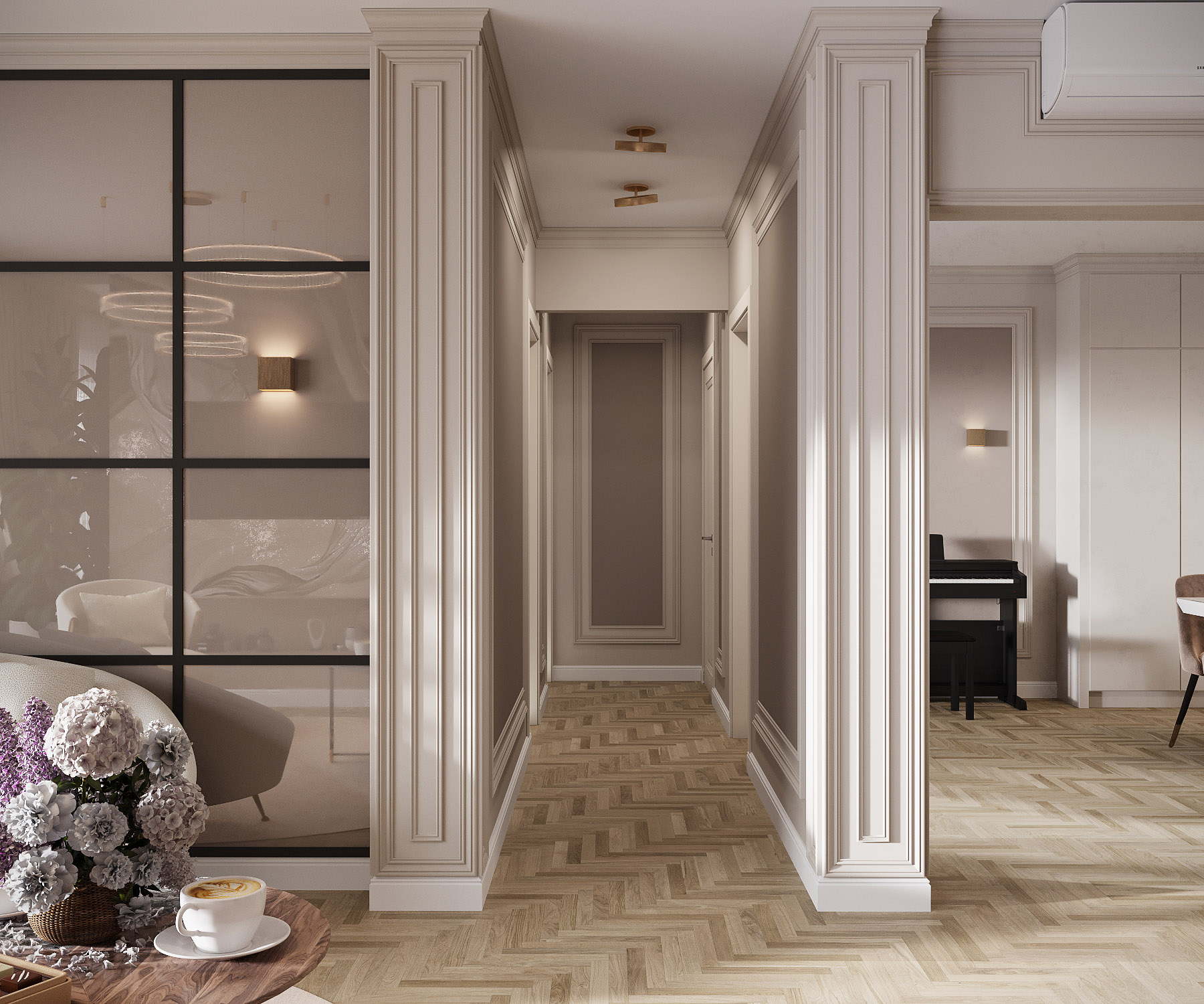 Этот проект выполнен в цветах и фактурах представления автора об этой стране и, конечно, с применением его излюбленных приемов с зеркалами, обоями, колоннами, акцентными цветами. В обсуждении проекта принимали участие все члены большой и дружной семьи, а также их друзья, и главное, бабушка. Кажется, бабушка наделена огромным чувством юмора, так эти встречи сопровождались смехом всей компании. Так на легкой ноте создался этот воздушный мелодичный интерьер в городе с поэтичным названием Нетания.