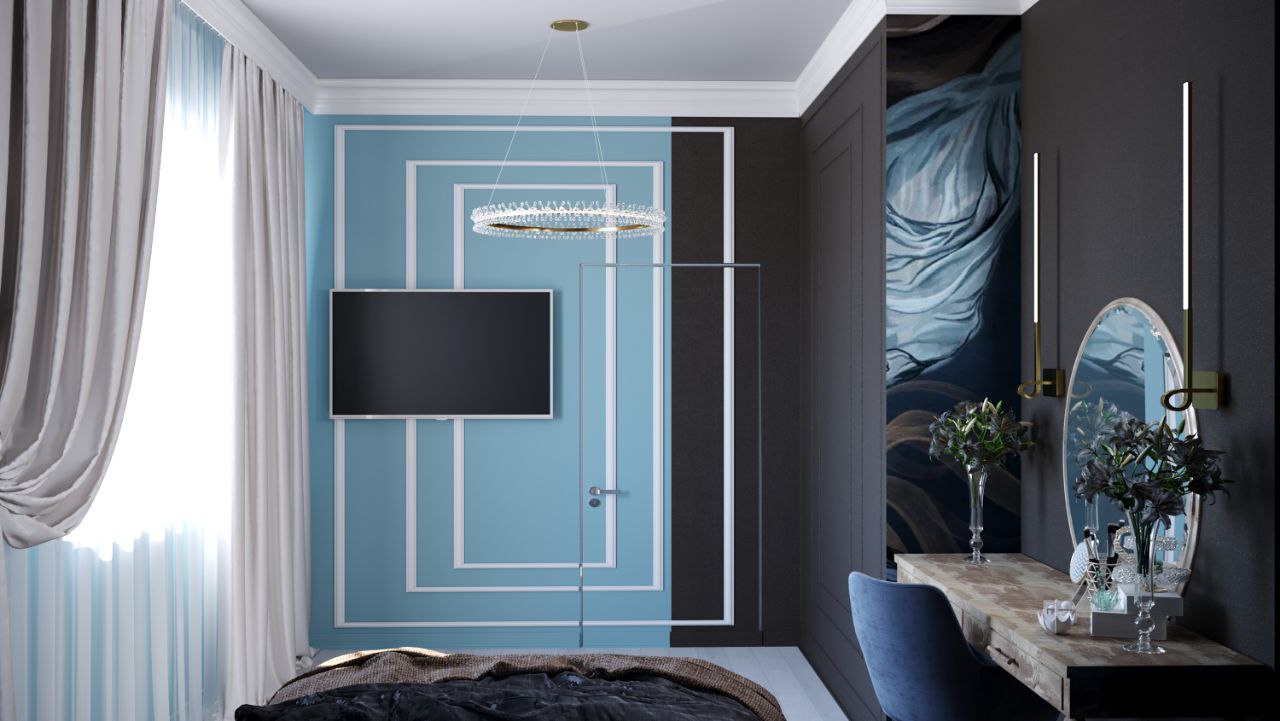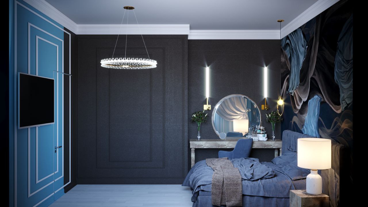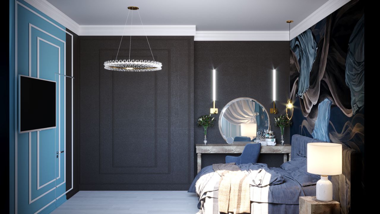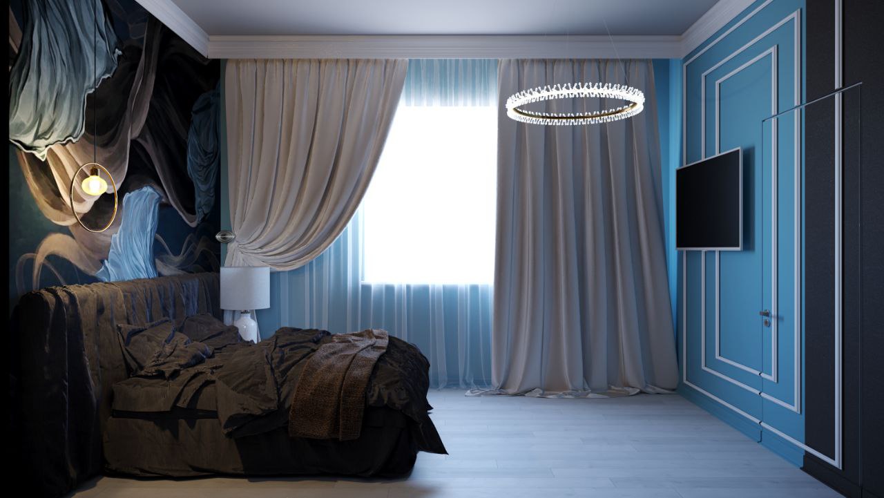 В интерьер спальни заказчики выбрали фреску Breeze 4. Обои из этой коллекции соберут отличную концепцию интерьера, в котором текстиль дополняет пространство, собирая картинку в единое целое, пропуская в помещение воздух и наделяя его лёгкостью.